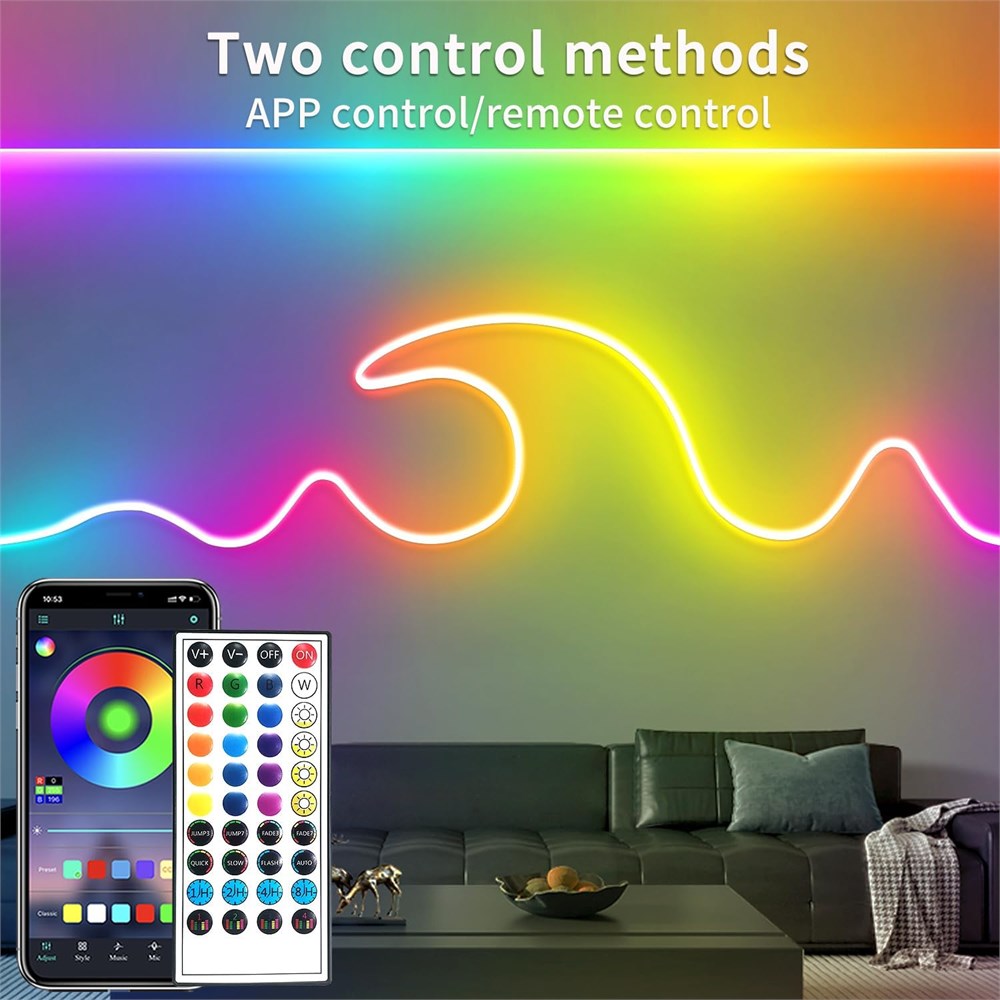 S r et durable : la bande lumineuse n on LED est aliment e par une basse tension de 24 V, ce qui r duit le degr de danger. La coque est douce et r sistante, et elle n'est pas facile casser lorsqu'elle est pli e volont ; la coque est r sistante aux hautes temp ratures, non inflammable, et dispose d'une vari t de m thodes de contr leur, qui peuvent tre contr l es par la t l commande infrarouge, les boutons de contr leur et le contr le par application. Coupe et s curit : tout comme une bande lumineuse LED RVB ordinaire, vous pouvez les couper dans une d coration d'int rieur sp ciale ou concevoir des panneaux commerciaux uniques. Cette guirlande lumineuse n on LED fonctionne sur 24 V CC et a une faible chaleur. Elle est donc touchable pour les enfants et les adultes. Les bandes lumineuses n on LED changeront de couleur avec le rythme du son et de la musique, apportant une atmosph re romantique et amusante votre f te et votre vie. Super lumineux : les n ons segrass sont compos s de 1080 LED, le design am lior de la LED et la luminosit lat rale rendent la bande segrass plus lumineuse que les bandes LED normales. La plage de projection de 120 degr s offre une grande couverture d' clairage avec une lumi re tr s uniforme, et pr s lectionnez votre couleur ou mode pr f r via l'application mobile ou la t l commande, puis d finissez le temps appropri pour teindre la lumi re, la barre lumineuse LED se souviendra automatiquement de la derni re couleur ou du mode lorsque vous l'utilisez nouveau. Flexible et tanche : par rapport aux lumi res LED ordinaires, cette bande LED n on est plus flexible, 360 se plie volont , vous pouvez facilement la plier dans la forme que vous voulez. Il peut facilement d corer la chambre, la chambre, la cuisine. tanch it IP65, bande lumineuse LED ext rieure tanche. Remarque : l'adaptateur d'alimentation et le contr leur ne sont pas tanches Contenu de l'emballage : 1), 2 ampoules n on LED de 20 m, 2 blocs d'alimentation 1,24 V2 A, 120 boucles, 120 vis, 1 contr leur, 1 t l commande. Remarques : 1. Le contr leur d'alimentation n'est pas tanche ; 2. Diff rent de la bande lumineuse LED traditionnelle, ce ruban adh sif n'est pas adh sif au dos de la bande de corde n on, seulement une installation clip fixe l'arri re de la corde n on Strip! Si vous rencontrez toujours un probl me, veuillez nous contacter, nous vous r pondrons dans les 24 heures.
