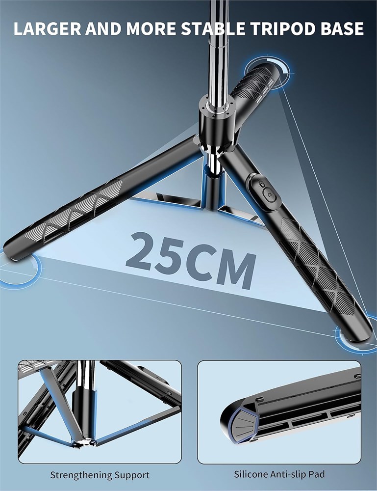 Versatile 71' Phone Tripod : SelfieShow's updated tripod combines the function of phone stand with a selfie stick. Effortlessly extends, A precision-crafted extension rod extends smoothly and uniformly, With a simple "Pull" the tripod iphone stand can be transformed into a long selfie stick, It glides to 70.86 inches tall tripod in less than a second. Perfect for taking selfies, Photographers, Youtube, vlogging, live streaming and Family Gathering. Extra Tall 71" Adjustable Tripod : With 8-section adjustable telescopic poles, the phone selfie stick tripod stand is tall enough, can be adjusted from 13.11in(33.3cm) to 70.86in(180cm). Therefore, this selfie stick for iPhone can capture a wider landscape and meet the needs of people who want to have different shoot heights and apply it in different scenes, even for the tall man. Suitable for selfies, vlog, live streaming, group photos and more. 360 Rotatable & Detachable Remote : The mount of the tripod stand can freely rotate 360 , which can be quickly ratoted the screen horizontally and vertically , and the mount arm can be 255 flipped to shoot pictures at various angles. Wireless remote can be instantly paired with a phone to take multiple photos within 10m,and it has a detachable design and can be placed in the groove of the travel tripod for easy storage when not in use. Lightweight and Portable : The SelfieShow selfie stick phone tripod is designed with portability in mind. With a folded length of only 13 inch(33.3cm) and a weight of 0.86 Ib(393g), it's incredibly lightweight and easy to carry around. You can easily pack it in your backpack and take it with you wherever you go, making it the perfect travel companion. Its compact size also makes it ideal for outdoor activities such as hiking, camping, or cycling, as it won't weigh you down. Wide Compatibility : The universal phone holder is compatible with all cellphone between 6.5cm to 10cm. With a universal 1/4" screw mount is applicable for most digital cameras, action camera, webcam and camcorder. Tripod mount for iPhone is suitable for almost all the smartphones, fits for iPhone 14 13 12 11 pro max, Samsung Galaxy S10 / S9 / S8, Huawei P40 / P30 / Mate 40 / Mate 30 and more.