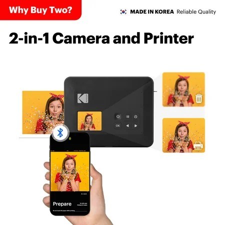 Two Photo Types: It is possible to print both bordered and borderless pictures with the Kodak Mini Shot 3 Retro photo printer. With this instant camera, you can create lasting memories by writing down your memories in the border type. You can print the borderless type of photo if you want to have them in a larger size. Low Photo Cost: Why pay more to print? Printing has never been easier with our Kodak Mini Shot 3 Retro instant digital camera. Photos are even half the cost if purchased in an instant digital camera bundle! Superior Photo Quality: The Kodak Mini Shot 3 Retro utilizes 4PASS technology, which allows you to print flawless photos in just a few seconds. As the photos are printed on layers of color and laminated, they are protected against fingerprints and water. Photos last over a 100 years! Instant Camera + Photo Printer: The Kodak Mini Shot 3 Retro is a digital camera with a built-in photo printer, so you can print your images or cancel them after you have taken them. With this instant digital camera, you can also print 3x3" photos directly from the gallery of your mobile device via Bluetooth. Kodak Mini Shot 3 Retro is compatible with Apple iPhone, iPad & Android devices. Superior Photo Quality: The Kodak Mini Shot 3 Retro utilizes 4PASS technology, which allows you to print flawless photos in just a few seconds. As the photos are printed on layers of color and laminated, they are protected against fingerprints and water. Photos last over a 100 years! Kodak App: Download the KODAK Photo Printer application and print from anywhere at any time. With fun decorative features such as beauty, filters, frames, and more, you can use the app to express your photos. Our app will do the rest of the work for you!