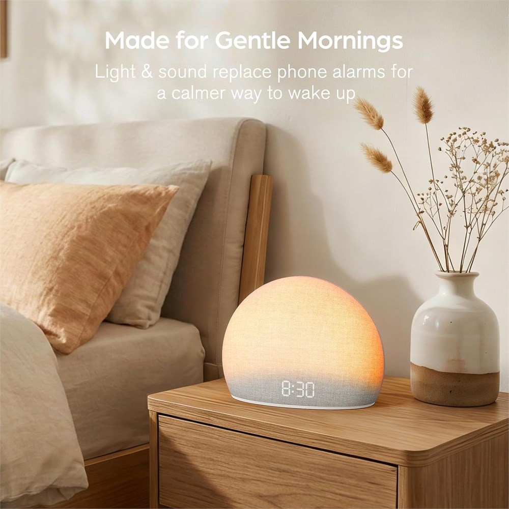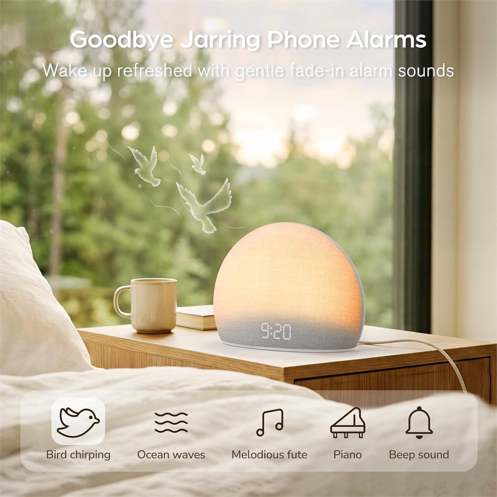 HOUSBAY Sunrise Alarm Clock with White Noise Wake-Up Light 5 Alarms, 20 Sounds.