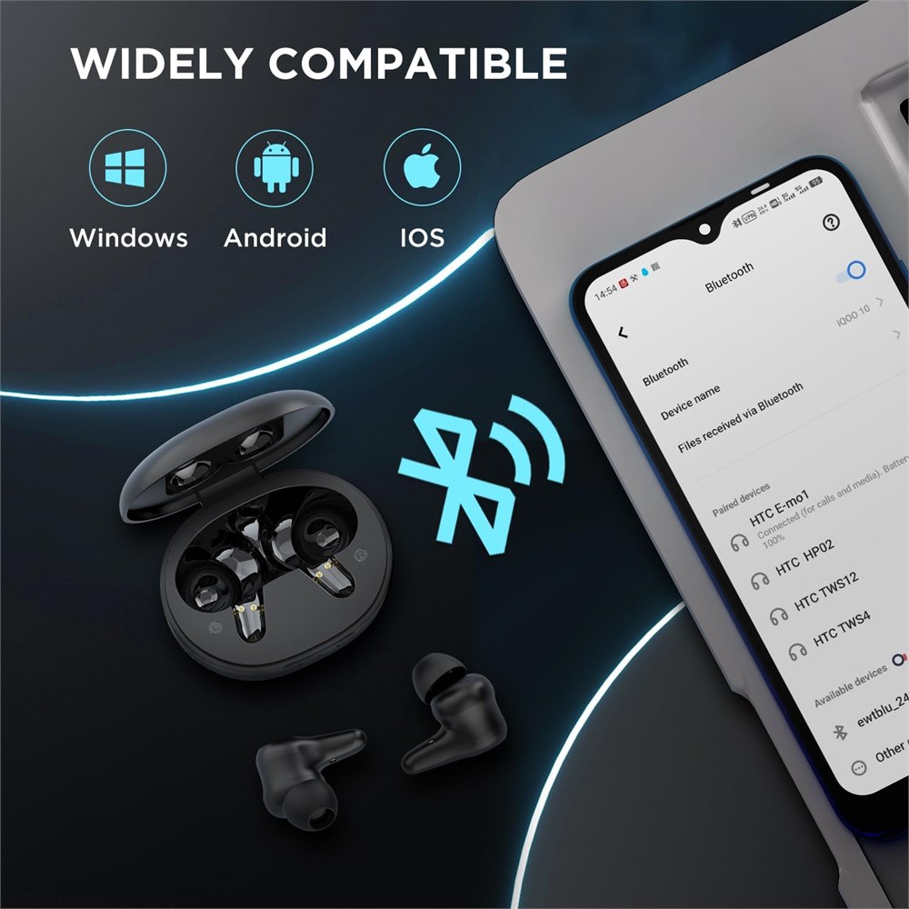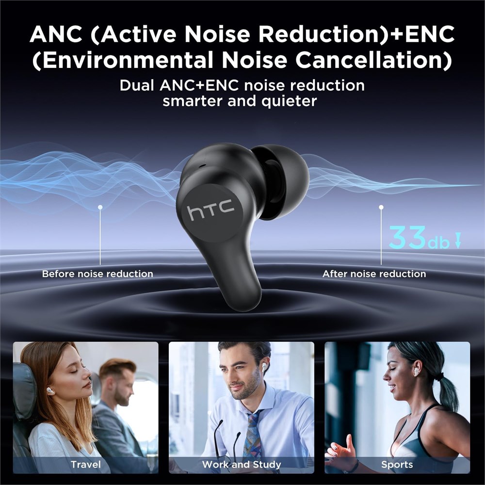 ANC & ENC Noise Canceling : Our earphones are equipped with advanced ANC and ENC noise cancellation technology, which can continuously monitor and analyze real-time external environmental noise, generate cancellation sound waves, effectively reduce or eliminate interference, reducing the amount of noise you hear and making them ideal for use in noisy environments like trains and buses. Bluetooth 5.3 & Transparency Mode : The mini wireless earbuds headphones adopt bluetooth 5.3 technology for instant pairing and stable connection, which greatly improve the transmission speed and providing you with a low-latency listening experience. The ear buds also have a transparency mode, which allows you to easily hear the surrounding sounds when you answer calls or listen to music while riding or driving, ensuring your safety. Hi-Fi Stereo and Clear Calls : Our wireless earbuds are equipped with a 13mm dynamic driver and advanced AAC/SBC audio codecs. To ensure a more natural sound, we've incorporated a composite diaphragm design that optimizes the performance of high, mid, and low frequencies. Equipped with 4 noise-canceling microphones, effectively suppress background noise and enhance voice clarity, delivering an unparalleled calling experience. IPX5 Waterproof & Comfortable to Wear : Our earbuds wireless Bluetooth feature a sealed design and a nano-waterproof coating that meets IPX5 dustproof and waterproof standards, effectively preventing damage from rain and sweat. They also come with three sizes of ear tips (S/M/L) to ensure a perfect fit for any ear shape.The ergonomic design of these wireless earbuds in ear ensures stability and comfort for long-term wear, making them an ideal choice for work, travel, meetings, driving, sports, and more. 32 Hours Playback Time : Enjoy up to 6-8 hours of playtime on a single charge, and a total of 32 hours of music playback when using the charging case, the charging case also provides up to 70 hours of standby time. The charging case can be fully charged in just 1.5 hours, which is sufficient to meet your sports, entertainment, work, travel, and most daily needs.