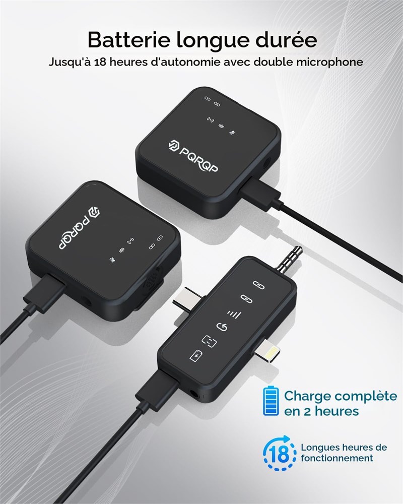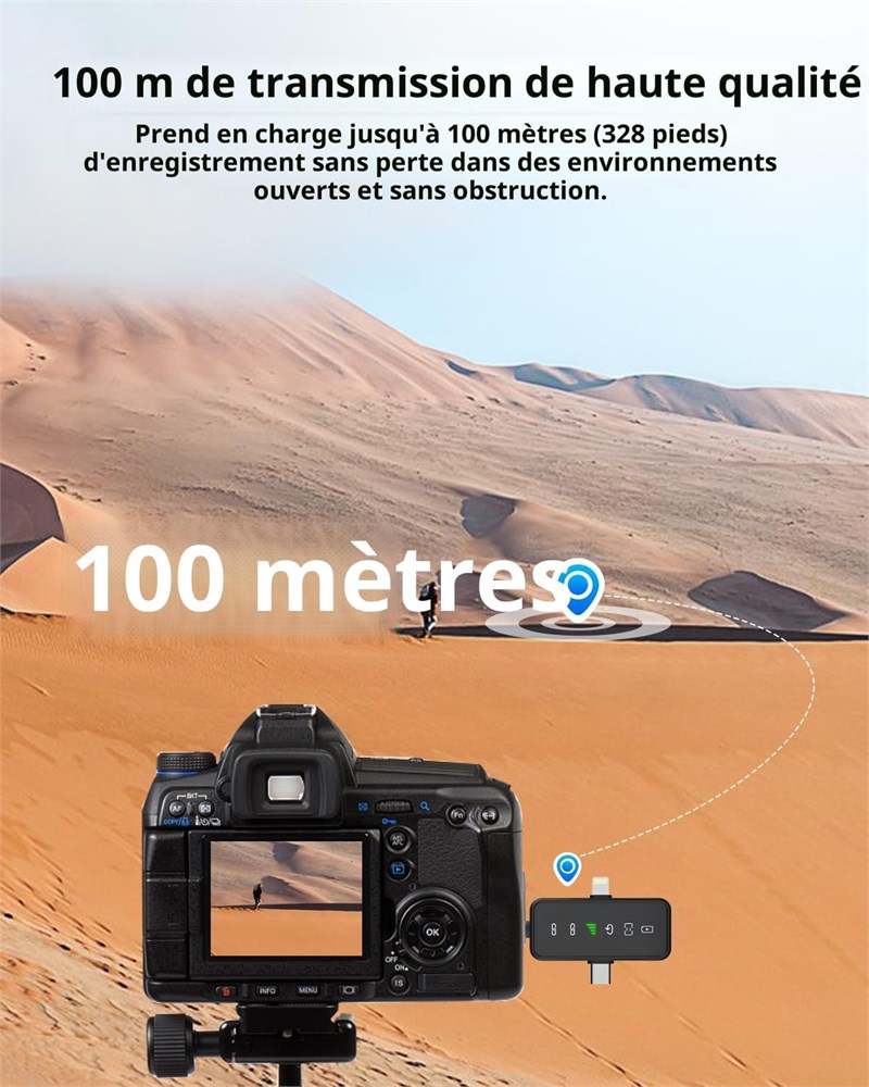 Son de qualit studio pour un son cristallin : ce microfonos inalambricos professionnel offre un son Hi-Fi sans distorsion de 48 kHz/24 bits, id al pour l'enregistrement, le streaming en direct et le karaok . Il dispose d'une suppression avanc e du bruit pour r duire l'encombrement de l'arri re-plan, ainsi qu'une housse en coton coupe-vent pour plus de clart . Design universel 3 en 1, pratique Plug and Play. Ce microphone Bluetooth sans fil (mini microphones) est livr avec un r cepteur polyvalent qui fonctionne parfaitement avec les iPhones (id al comme microphone pour iPhone), les appareils Android, les iPads, les ordinateurs portables et les appareils photo. Il suffit de le brancher et de commencer l'enregistrement, parfait pour YouTube, TikTok, podcasts ou interviews. Il transforme n'importe quel appareil en un outil audio professionnel en quelques secondes, aucune configuration compliqu e n'est n cessaire. Dur e de vie de la batterie de 20 heures, cr ation ininterrompue : ne vous souciez plus des piles mortes en milieu de projet. Une seule charge donne au mini micro 10 heures d'utilisation, et avec deux microphones, vous obtenez jusqu' 20 heures d'autonomie. Il est parfait pour les longs tournages, les flux en direct en plein air ou les v nements tout au long de la journ e, assurant que votre cr ation de contenu reste sur la bonne voie du d but la fin. Port e de 100 m et faible latence, se d place librement, son sans d faut, aliment par une transmission avanc e 2,4 G, les microphones sans fil maintiennent une connexion stable jusqu' 100 m avec un minimum de latence. Que vous soyez en direct, filmez un film, diffusez ou enregistrez en d placement, vous pouvez vous d placer librement sans perte audio ou probl mes de synchronisation labiale en post-production. R verb ration et sourdine instantan e, augmentation de la facilit d'utilisation. Ce micro sans fil ajoute une immersion avec r verb ration int gr e, id al pour le chant ou la narration. Il dispose galement d'un bouton muet, maintient le syst me connect tout en mettant l'audio en sourdine pour les chats priv s, les ajustements rapides ou les interruptions. Pas besoin de mettre hors tension : pr servez votre vie priv e et votre flux cr atif. Un incontournable pour les kits de podcast professionnels et tous les besoins d'enregistrement. Surveillance audio en temps r el : profitez d'une fonctionnalit avanc e de surveillance des oreilles : il suffit de brancher votre casque de type C pour entendre l'audio captur par le micro en temps r el. Cela vous permet de d tecter les erreurs t t, d' viter les erreurs d'enregistrement ou de contenu manquant, et garantit que vos enregistrements restent pr cis, tout en am liorant votre exp rience d'enregistrement globale.