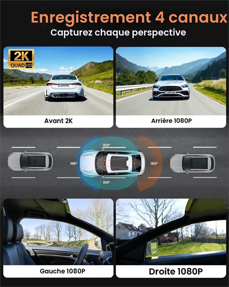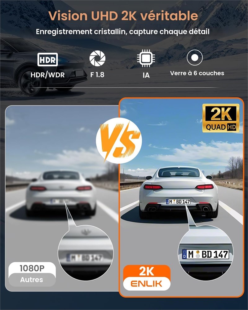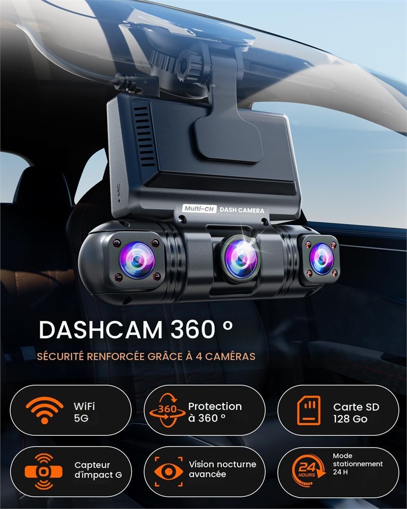 Cam ra embarqu e 4 canaux : cam ra de tableau de bord enlik 4 canaux avant et arri re quip e de 2K + 1080p + 1080p + 1080p pour un enregistrement complet 360 . Les cam ras frontales ultra-larges 170 et les trois cam ras lat rales/arri re grand angle de 150 capturent toutes les rayures et bosses mineures 360 , vous offrent des preuves fiables pour g rer les litiges en toute confiance, prot geant votre s curit et votre portefeuille. Capteur d'image QHD 2K et mise niveau : quip d'un capteur d'image STARVES 2.0 pour la cam ra QHD 2K, am liorant consid rablement la sensibilit la faible luminosit . Cette cam ra embarqu e offre une qualit d'image exceptionnelle avec des couleurs vives et des d tails nets, m me dans de mauvaises conditions m t orologiques. Vision nocturne sup rieure La cam ra embarqu e S23Q dispose d'une tr s grande ouverture F1.6 et d'une lentille en verre 6 couches, en particulier la technologie HDR/WDR. Il capture des s quences nettes et d taill es, m me dans des environnements faiblement clair s ou nocturnes, pour garantir que chaque moment critique est clairement enregistr . WiFi 5G et contr le par application : la cam ra embarqu e enlik se connecte une application gratuite pour Android ou iOS. Avec WiFi 5 GHz int gr pour une connectivit 4 fois plus rapide que 2,4 GHz, vous pouvez facilement visualiser des vid os dans l'application. Pour une qualit Full HD, veuillez t l charger les images avant de les regarder. Capteur G : cette cam ra de bord dispose d'un mode de conduite intelligent. Lorsqu'un impact soudain est d tect , l'enregistrement d'urgence d marre automatiquement. Les s quences sont enregistr es et verrouill es, ce qui les emp che d' tre cras es par l'enregistrement en boucle et garantit la pr servation des preuves cruciales. Mode stationnement 24 h : avec 2 modes de stationnement, gardez votre voiture toujours en s curit . Une fois que R veil de stationnement et D tection de gravit sont activ s, la cam ra de tableau de bord d marre automatiquement et enregistre une vid o de 30 secondes de l'incident si une collision se produit, m me lorsque la voiture est teinte. Remarque : il faut ouvrir r veil stationnement et d tection de gravit dans le r glage (pas besoin de kit de c bles). Si vous avez besoin d'une surveillance continue 24 heures sur 24, un kit de c blage ACC est n cessaire (achat suppl mentaire s par ment) Facile installer : le manuel comprend des vid os d'installation et d'utilisation pour une installation et un fonctionnement faciles, adapt tous les types de voitures. C'est le meilleur cadeau de No l pour homme, femme, maman et p re. Vendu dans plus de 20 pays travers le monde, la cam ra embarqu e enlik a gagn des loges pour son engagement envers la haute qualit . Tous les produits enlik b n ficient d'une garantie de deux ans. Pour tout probl me, il sera enti rement rembours ou remplac gratuitement, sans question.