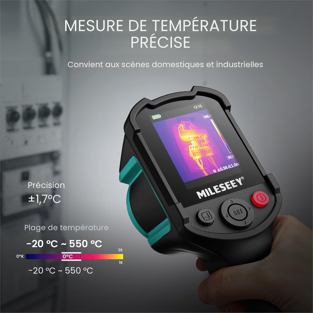 Cam ra thermique haute r solution : la cam ra infrarouge TR10 a une super haute r solution de 240 x 240 et un taux de rafra chissement d'image de 25 Hz, ce qui rend l'image claire et soyeuse. Haute clart et taux de rafra chissement pour vous aider inspecter facilement les probl mes Mesure pr cise de la temp rature : cet imageur thermique a une sensibilit thermique lev e NETD < 50 mk. La plage de temp rature est de -15,6 C 550 C. Avec une pr cision de 2 C qui rend les lectures de temp rature fiables. Verrouille et affiche automatiquement les temp ratures maximales, minimales et centrales dans la zone num ris e. Am liore l'efficacit dans l'identification des points chauds ou des anomalies Reconnaissance rapide des anomalies : l'alarme de temp rature haute/basse avertira les utilisateurs des zones d passant ou tombant en dessous de la temp rature pr d finie. D tecte les anomalies dans les r gimes de temp rature, mettant en vidence les probl mes potentiels tels que la surchauffe des composants ou des anomalies dans les structures missivit r glable : la cam ra infrarouge TR10 permet aux utilisateurs de r gler les param tres d' missivit en fonction des diff rents mat riaux, assurant des lectures pr cises de la temp rature sur diverses surfaces et objets Durable et robuste : le test de chute de 2 m et la protection de l'objectif encastr vous permettent de fonctionner en toute confiance dans une vari t de param tres de travail, y compris les environnements difficiles. (2) La batterie de 3000 mAh prend en charge 8 heures de fonctionnement continu. (3) Capacit de stockage int gr e de 8 Go pour stocker plus de 30 000 photos Applications polyvalentes : id al pour l'entretien industriel, les inspections lectriques, les diagnostics de b timents, les inspections CVC. Offre une performance robuste pour am liorer l'efficacit et la pr cision dans divers environnements professionnels.