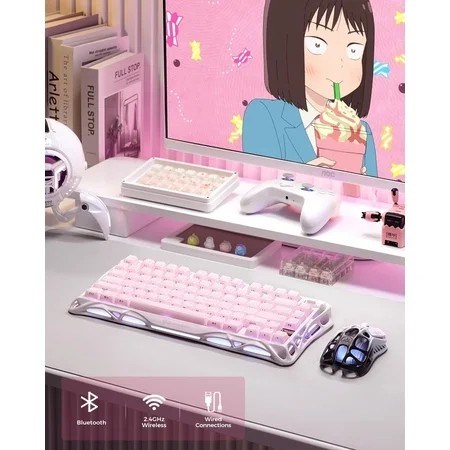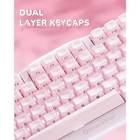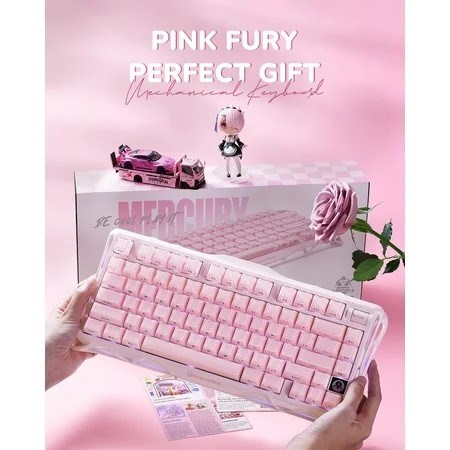 Sakura Pink Special Edition Design Stunning cherry blossom-inspired aluminum alloy frame with premium, glowing aesthetics. 75% Compact Layout with Knob 79 keys for space-saving functionality and easy volume/media control. Custom Kailh Cherry Pink Linear Switches Smooth 40gf actuation, hot-swappable for 3/5-pin switches, delivering deep "thock" sound. Custom Kailh Cherry Pink Linear Switches Smooth 40gf actuation, hot-swappable for 3/5-pin switches, delivering deep "thock" sound. Tri-Mode Connectivity Seamless 2.4GHz Wireless, Bluetooth, and Wired options for versatile use. Massive 8000mAh Battery Extended wireless gameplay and typing without frequent charging. Immersive RGB Lighting 13 customizable modes with dual independent backlighting for vibrant effects. Durable PBT/PC Keycaps High-quality, long-lasting keys resistant to wear and shine. Hot-Swappable & Customizable Easily swap switches; includes 4 extra switches for sound/feel experimentation.