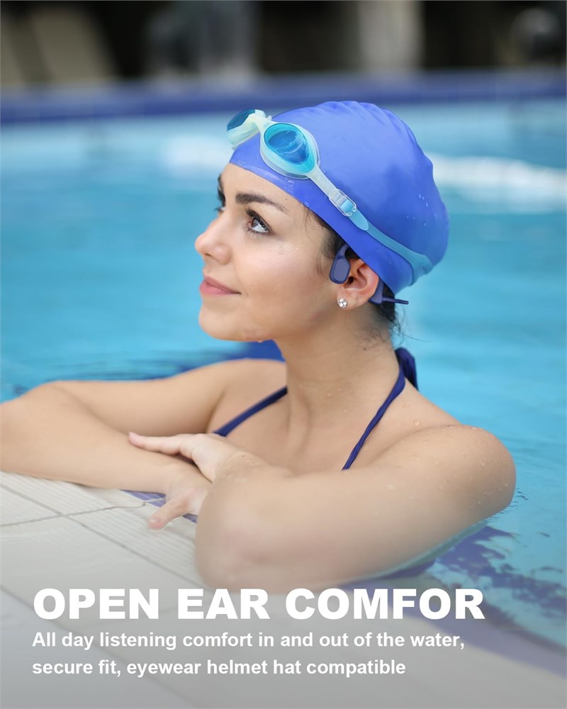 Casque de natation : casque son osseux sp cialement con u pour la natation, transmet le son pour vous via les pommettes. Cela signifie que la transmission audio est presque silencieuse avec la plus haute fid lit audio. Le design des couteurs Bluetooth oreilles ouvertes vous permet de percevoir le bruit ambiant et la musique en m me temps.