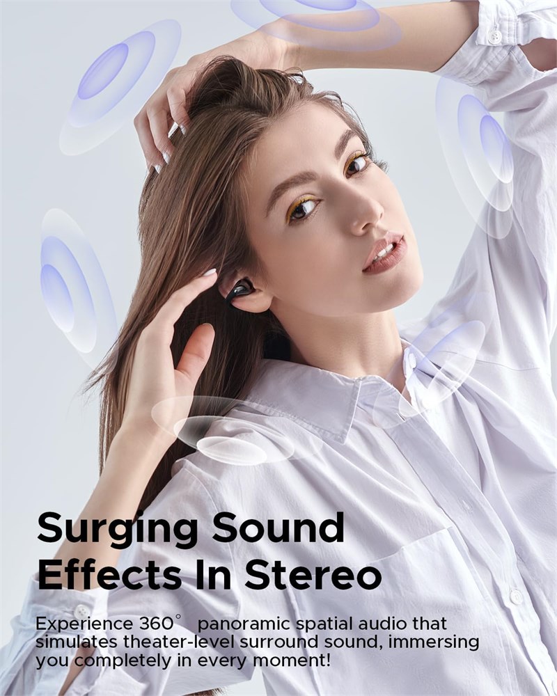 Innovative Ultra-Comfortable Design - Truefree B1 open ear earbuds, inspired by water droplets, feature a sleek finish and ultra-soft liquid silicone C-shaped ear hooks that create a premium feel and secure fit, fitting the contours of the ear more naturally without interfering with wearing glasses. The clip on earbuds come with an innovative clip-on design and weigh just 5g per earbud. Spatial Sound with Dynamic Bass - These ear clip earphones are equipped with 10.8 mm (BPU + high-carbon fiber diaphragm) dual-magnetic drivers for doubled output energy. These Bluetooth earbuds utilize panoramic spatial sound technology and a dynamic bass algorithm to deliver an immersive stereo listening experience. Easy Earbud Finder - Open-Ear Wireless Earphones with an IPX4 waterproof rating let you enjoy worry-free workouts while staying aware of real-time outdoor sounds for safer training perfect for outdoor running, gym sessions, and more; in addition, these wireless earbuds are equipped with a water drainage function and a ringtone locator feature to help you find your earbuds. 25 Hours of Listening Time - The open ear clip earbuds offer up to 5.5 hours of playtime on a single charge and 25 hours in total with the pebble-like USB-C charging case. Fast-charge support gives these ear clip ear buds 1 hour of use from just 10 minutes of charging. With the Truefree app, you can fine-tune your sound using a dynamic EQ and adjust the settings to match your listening preferences. Directional Acoustic with Minimal Sound Leakage - Powered by Audio Technology 2.0, these open-ear clip-on earbuds use directional sound transmission and reverse-acoustic silencing to focus audio on you while minimizing leakage. These on-ear clip headphones also feature dual-mic AI call noise reduction and a wind-resistant structural design to help keep your voice clear outdoors.