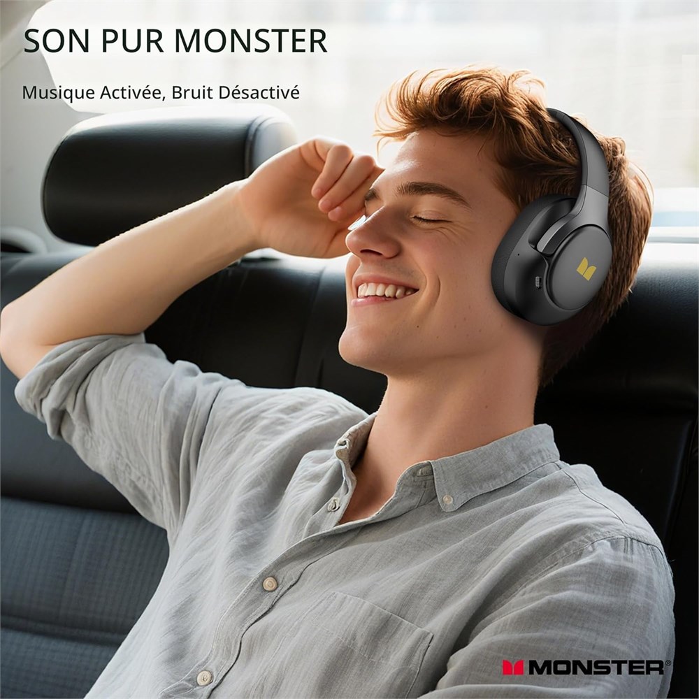 R duction active du bruit hybride : deux microphones internes et deux microphones externes fonctionnent ensemble pour d tecter et r duire jusqu' 95 % du bruit ambiant, des moteurs d'avion et des grondements de m tro aux bavardages de bureau, assurant une exp rience d' coute in gal e. Son Pure Monster : Les couteurs Bluetooth Monster sont dot s d'un processeur audio num rique unique et de puissants transducteurs de 40 mm pour offrir un son st r o Hi-Fi immersif. Avec la technologie Pure Monster Sound, profitez d'une exp rience audio quilibr e avec des basses profondes et puissantes et des m diums et aigus cristallins : ressentez chaque battement et chaque note avec pr cision. Autonomie de batterie longue dur e de 70 heures : Avec jusqu 70 heures d coute de nos couteurs sur-oreillettes en mode ANC D SACTIV . Une seule charge vous permet d' couter plus de 900 chansons ou de suivre la bande sonore de plusieurs vols long-courriers. galement quip d'un c ble audio de 3,5 mm, lorsque la batterie est puis e, il suffit de brancher le c ble de 3,5 mm pour continuer profiter d'un son sans perte. Confort tout au long de la journ e : Fabriqu s avec des mat riaux de premi re qualit , les casques supra-auriculaires sans fil Bluetooth pour le travail ne p sent que 0,38 lb, ce qui en fait certains des plus l gers du march . Le bandeau r glable assure un ajustement confortable pour toutes les tailles de t te, tandis que les coussinets doux en prot ines m moire de forme prot gent vos oreilles pendant de longues sessions d' coute. Modes d' coute polyvalents : ces couteurs Bluetooth sans fil disposent des modes ANC et transparents, vous permettant de basculer entre l'annulation compl te du bruit et la conscience compl te de votre environnement pour un contr le sonore sans faille. Le mode standard offre un son quilibr pour une coute quotidienne. Double connexion : connectez-vous deux appareils simultan ment avec Bluetooth 6.0 et basculez instantan ment entre eux. Que vous travailliez sur votre ordinateur portable ou que vous ayez besoin de prendre un appel t l phonique, l'audio de vos couteurs Bluetooth se jouera automatiquement partir de l'appareil dont vous avez besoin d'entendre. Connectivit filaire et sans fil : ces couteurs sans fil sont dot s du Bluetooth 6.0 pour une connectivit sans fil stable, offrant un son de haute qualit sans interruption. En outre, lorsque la batterie est puis e, il suffit de brancher le c ble de 3,5 mm pour continuer profiter d'un son sans perte. Conception pliable : La conception pliable et l g re vous permet de plier facilement les couteurs pour les ranger dans des sacs de transport ou des tuis de voyage, occupant un espace minimal dans votre sac dos - parfait pour les voyages, les sports et l utilisation quotidienne.