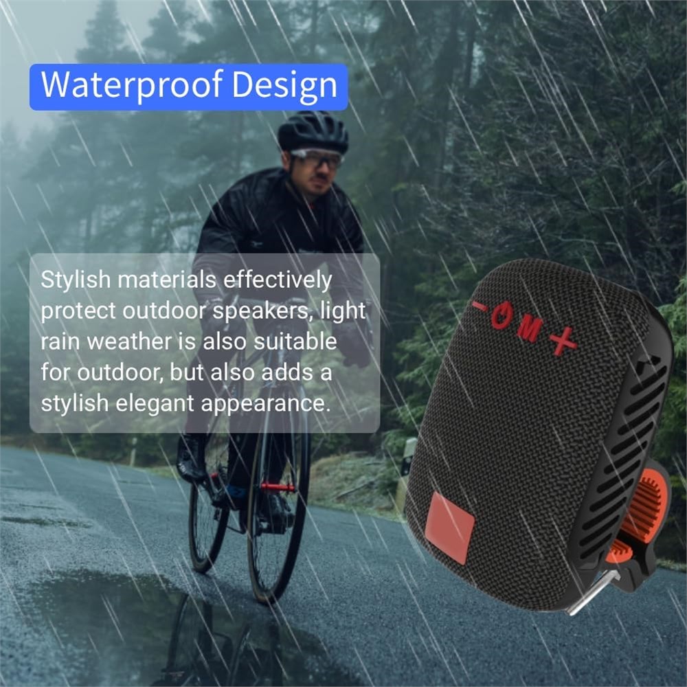 Waterproof Design: This BT speaker is waterproof, can withstand harsh weather conditions, allowing for outdoor activities such as cycling, hiking, camping, etc. Dual Pairing: The BT speaker adapts dual pairing technology, providing stereo sound effects to make the music more dynamic. Fashionable and The stylish fabric material effectively protects the outdoor speaker, also adding a fashionable and elegant appearance for long lasting use. Multiple Function: The waterproof speaker has built in card slot design, also supports memory card, supporting FM radio, allowing you to play music and radio anytime, anywhere with convenience. Portable Design: The cycling speaker is Lightweight and easy to carry, also compact for easy storage, allowing you to enjoy premium music anytime.