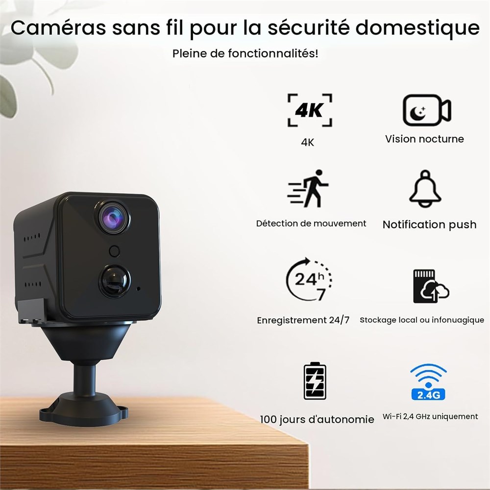 Stockage sur carte SD pour flexibilit et commodit Avec le support int gr pour carte SD, vous pouvez facilement stocker et acc der aux enregistrements localement (carte SD de 64 Go incluse). Pas besoin de vous soucier des frais de stockage dans le cloud, tout est entre vos mains. Bien s r, nous proposons galement des services cloud que vous pouvez galement utiliser. Qualit Ultra 4K et Excellente Vision Nocturne Nos cam ras de s curit pour la maison offrent une exp rience de diffusion en direct 4K claire, vous permettant de surveiller vos animaux de compagnie ou vos b b s avec des d tails complexes. M me dans l'obscurit , ils peuvent maintenir une visibilit in gal e, prot ger votre maison et vous donner la tranquillit d'esprit. D tection de mouvement PIR et alertes en temps r el Cette cam ra cach e fournit des alertes de d tection de mouvement instantan es d s qu'elle d tecte un mouvement, sans p riode de refroidissement. Cette fonctionnalit vous permet de rester inform de toute activit inhabituelle, am liorant consid rablement votre s curit globale. Conseils pour le stockage local et la connexion WiFi : notre cam ra cach e prend en charge le stockage local avec une carte SD jusqu' 128 Go. Vous pouvez galement activer l'enregistrement continu une fois que vous avez configur le stockage local. Veuillez noter que cette cam ra ne fonctionne qu'avec le WiFi 2,4 G et ne prend pas en charge le Wi-Fi 5G. Design compact et portable : cette cam ra espion dispose d'un design incroyablement compact pour une installation facile sans avoir besoin d'outils suppl mentaires. Sa petite taille le rend pratique pour le transport, vous permettant de surveiller distance de n'importe o , tout moment. Veuillez noter que la vid o enregistr e n'inclut pas l'audio, conform ment la politique d'absence audio d'Amazon.