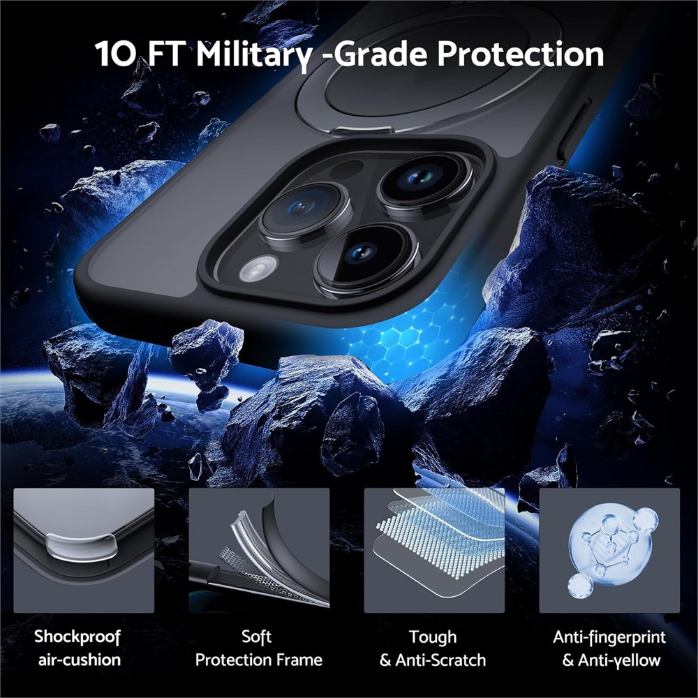 2 in 1 Magnetic Case Invisible Stand 2023 New Case for iPhone 14 Pro that offers both a mag ring and a kickstand capability. The built-in aluminum magnetic ring can stand steadily in portrait or landscape mode when it opens, and is totally INVISIBLE on the back. Can titanium alloy and Non inductive damping phone case kickstand can reverse angle about 120 . Whenever you are browsing files or watching videos, it can be hands-free. Upgraded Magnetic Power DASFOND's N52 magnets ring structure, allowing for 2 times stronger magnetism than the Official's N48. With the support of upgraded technology, the charging is more stable and the charging time is shortened. Besides, the iPhone 14 Pro cover for magsafe is perfectly compatible with all MagSafe accessories and other Qi-certified wireless chargers (such as car mounts, wireless power banks, magnetic wallets, etc). All-round protection The back of the magnetic stand protective case for iPhone 14 Pro is made of high-grade hard PC material, and TPU material bumper with a 4-layer buffer structure to provide multi-layer shock-proof protection, effectively protect your phone against everyday drops and bumps Up to 10FT. 2.5 mm raised lip over the camera prevents the lens from being scratched, 1.5 mm bezel over the screen keeps your Phone screen from damage. Thin. Light. Anti Slip. Heat insulation. Never Yellow The translucent magnetic iPhone 14 Pro case with kickstand adopts an ergonomic design. It has excellent anti-slip performance. Precise cutouts and slim design allow you to maximize the functionality of your Phone. The unique depth of the bracket groove allows you to stop worrying about the perm of your phone and put it into your pocket at will. And all materials and coatings are optimized to prevent yellowing over time.