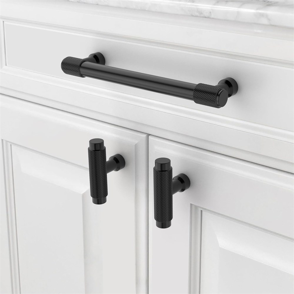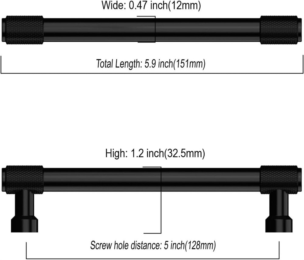 Material - The cabinet handles is made of alloy, Matte Black finish, more stable and durable, while making your cabinet more delicate and beautiful. Cabinet Pulls Dimensions - Center of Hole (CC): 5" (128mm); Overall Length: 5.9" (151mm); Width: 1-1/4" (32mm); Projection : 1-3/8 inches (35 mm) Fits Most Cabinets - We offer 1" (25mm) and 1.77" (45mm) mounting screws to help you mount most furniture of different thicknesses, Machine Screws Metric Size: M4 Versatile Applications - This Matte Black cabinet handles is perfect for dressers, drawers, doors, cupboards, wardrobes, closets. The solid and durable kitchen cabinet hardware solid iron handle is a good helper to pull out the drawer quickly and easily.