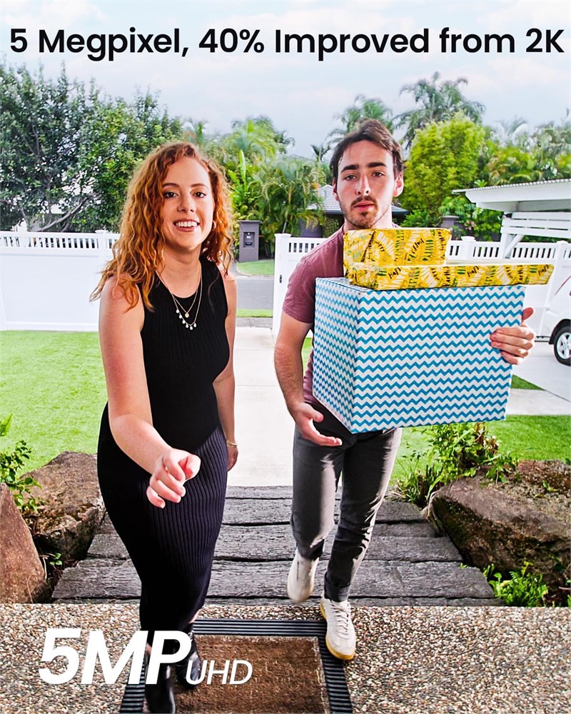 5MP UHD, 40% Improved From 2k: Adopted 7 pieces of an advanced ultra-clear optical glass lens with WDR ensures you get sharp, detailed images even in low-light or bright conditions. 3D Motion Detection, No False Alerts: Use the latest radar technology to identify the distance and track of objects, so that the doorbell only records when someone passes your customize specific threshold. 60 Days Loop Recording: Stored videos directly to your HomeBase with built-in 8G memory and view them anytime anywhere. 180 Days From 1 Charge: Built-in rechargeable battery and 58% consumption reduced low-power wireless connection, ensure 180 days of flawless front door coverage from 1 charge. 166 Field of View: You could see a person from head to toe or a package on the ground, there are no blind spots.