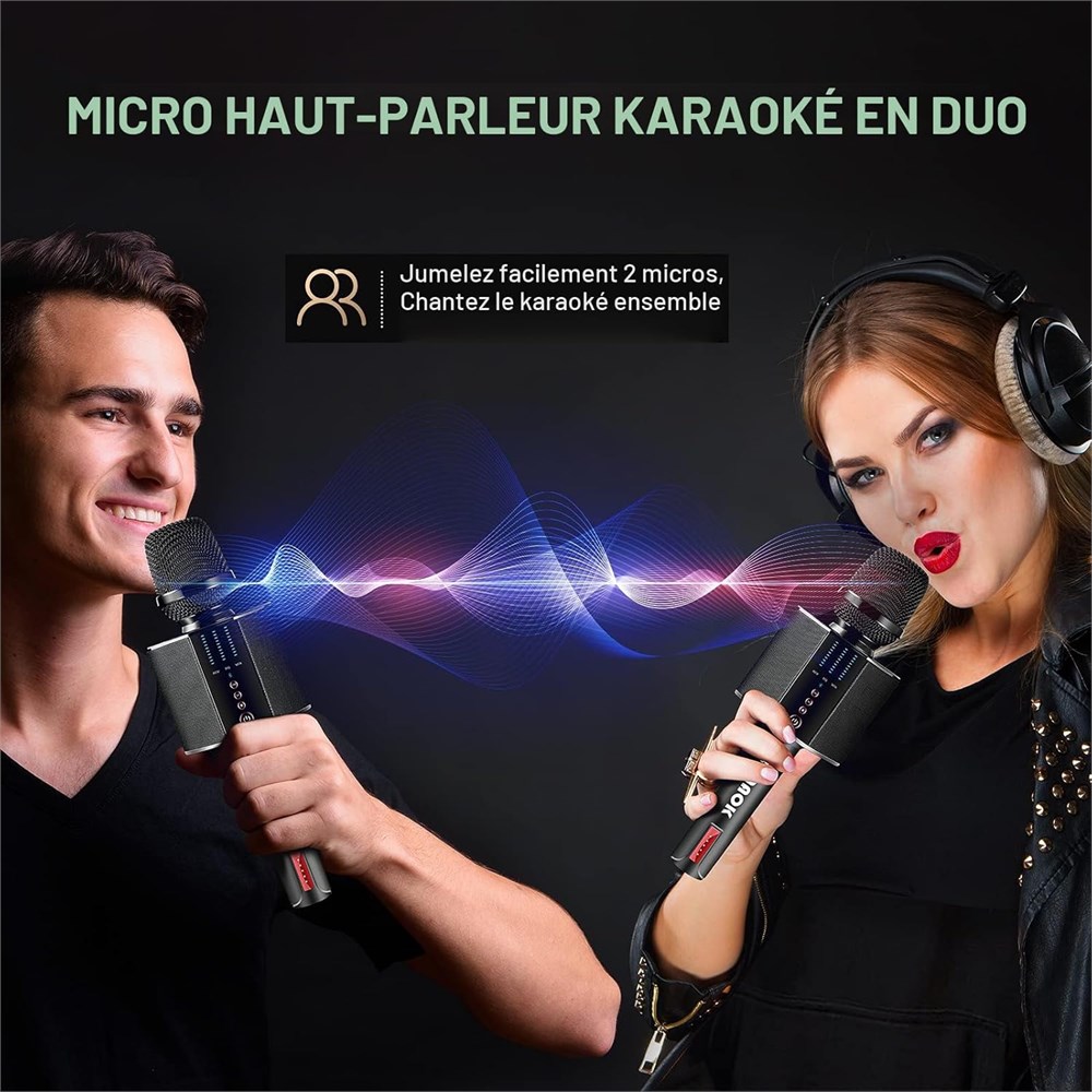 Microphone de karaok multifonction : microphone portable, haut-parleur Bluetooth st r o, machine de karaok portable, enregistreur, microphone de voiture, chant en duo, galement capable de supprimer/restaurer les voix de la musique. Microphone de chant karaok pour voiture Connexion sans fil toute voiture via un tuner FM, rapide et facile utiliser. N'est plus ennuyeux pour votre voyage en voiture. Microphone de karaok adapt aux adultes. Haut-parleurs st r o puissants : haut-parleurs haute fid lit int gr s de 26 W, son plus clair et plus fort. La puce EQ et la technologie DSP peuvent aider r gler automatiquement les aigus et les basses. Ensemble avec mode professionnel, karaok et mode ma tre pour r pondre diff rentes occasions, telles que le karaok en voiture, f te, salle de classe, discours. Microphone karaok double Le microphone BONAOK G50 prend en charge la fonction de chant en duo. Rassemblez votre famille ou vos amis, laissez le plaisir commencer. Conseils pratiques : Commandez le micro G50 avant octobre 2023. Il ne sera pas en mesure de compl ter la fonction DUET avec la version 2024 du micro G50. Parce que la version 2024 a mis jour la puce Bluetooth, donc si vous avez besoin de DUET, vous avez besoin de deux micros de la version 2023, ou deux micros de la version 2024.) Batterie rechargeable BONAOK : avec batterie rechargeable multi-protection pour un temps de chant plus long. Chargement plus rapide, longue dur e de vie.