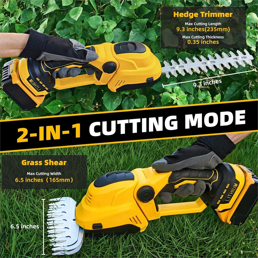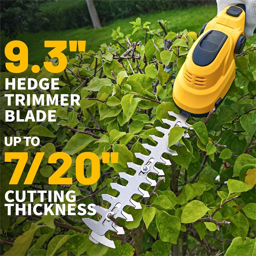 Performance avanc e et puissante : ce taille-haie et taille-haie 2 en 1 est quip d'un moteur sans balais avanc qui offre 20 000 tr/min et 600 W de puissance. Ce taille-haie sans balais offre un couple plus lev , une puissance de coupe am lior e et des performances plus silencieuses tout en prolongeant la dur e de vie de l'outil. Compatible avec batterie Dewalt Ce taille-haie sans balais de 20,3 cm et 15,2 cm, compatible avec les batteries DEWALT 20 V (telles que DCB200, DCB201, DCB203, DCB203G, DCB204, DCB204BT**, DCB205, DCB205G, DCB205G, DCB2005G, DCB2005G, DCB2005). 5 BT**, CC. B206, DCB208, DCB210, DCB230, DCB240, DCBP034, DCBP520). Branchez votre propre batterie et faites votre travail rapidement et facilement. Remarque : pas de batterie ou de chargeur inclus. Seul l'outil est fourni. Outil de jardinage 2 en 1 : ce taille-haie combine deux fonctions (tailler et fa onner). Vous pouvez changer les lames du taille-haie sans aucun outil, il suffit d'appuyer sur les boutons des deux c t s. Il suffit de tailler les branches avec les longues lames (23,6 cm de long) et de tondre l'herbe avec les lames courtes (16,5 cm de large). Que vous tailliez des haies, de l'herbe ou des plantes, ce taille-haie peut fournir des effets de coupe parfaits pour les pelouses, les haies ou les bordures de jardin. T te r glable : cette tondeuse a une t te r glable qui peut tre r gl e sur 2 angles (20 ou 40 ). Il prend en charge diff rentes formes et hauteurs de haies (sommets plats, c t s inclin s, verticaux difficiles d'acc s, sans posture tendue ni repositionnement fr quent). Il vous permet d'ajuster librement votre angle de tonte diff rentes zones et hauteurs d'herbe, ce qui rend votre travail de jardinage beaucoup plus facile. Plus fiable et relaxant : le taille-haie dispose d'un bouton de verrouillage de s curit fiable pour viter les d marrages accidentels, am liorant la s curit op rationnelle. Poussez le bouton de verrouillage de s curit vers l'avant et appuyez sur l'interrupteur d clencheur pour d marrer la machine. Une fois la machine d marr e, veuillez rel cher tous les boutons, ce qui rend votre travail de jardinage beaucoup plus facile. Remarque : pour teindre la machine, il suffit d'appuyer nouveau sur le bouton de verrouillage de s curit . L ger et facile utiliser : ce taille-haie manuel ne p se que 0,9 kg. Le design l ger et la poign e confortable du taille-haie rendent votre travail plus pratique.