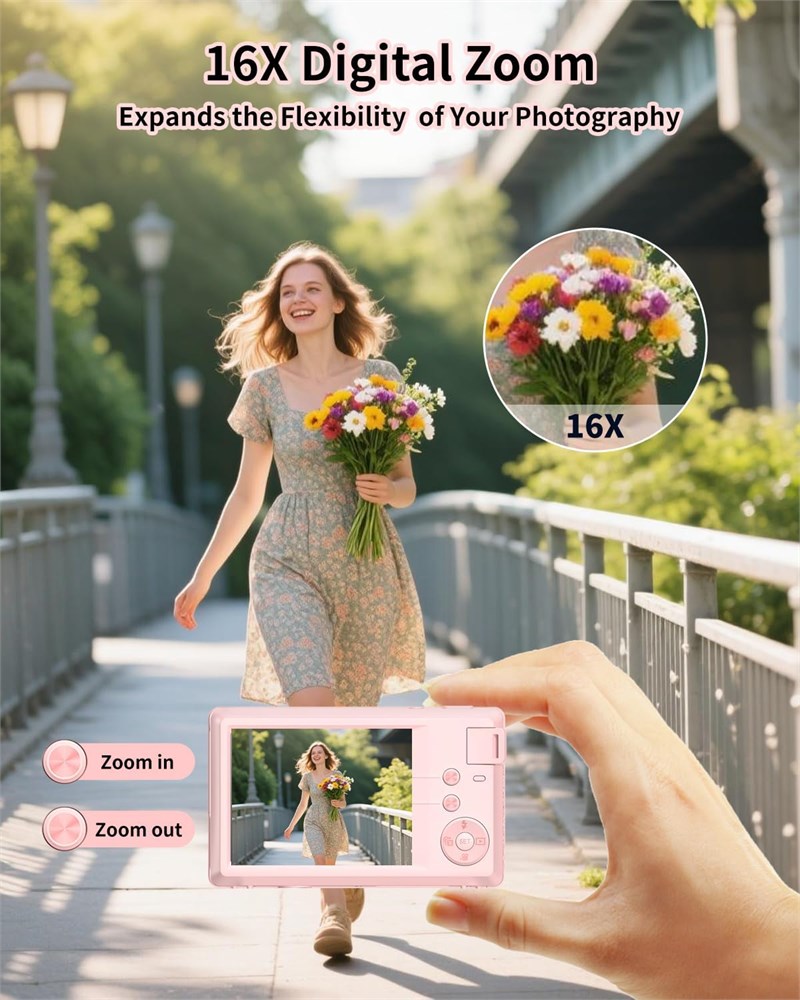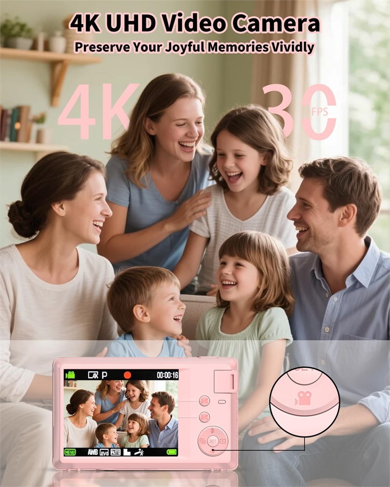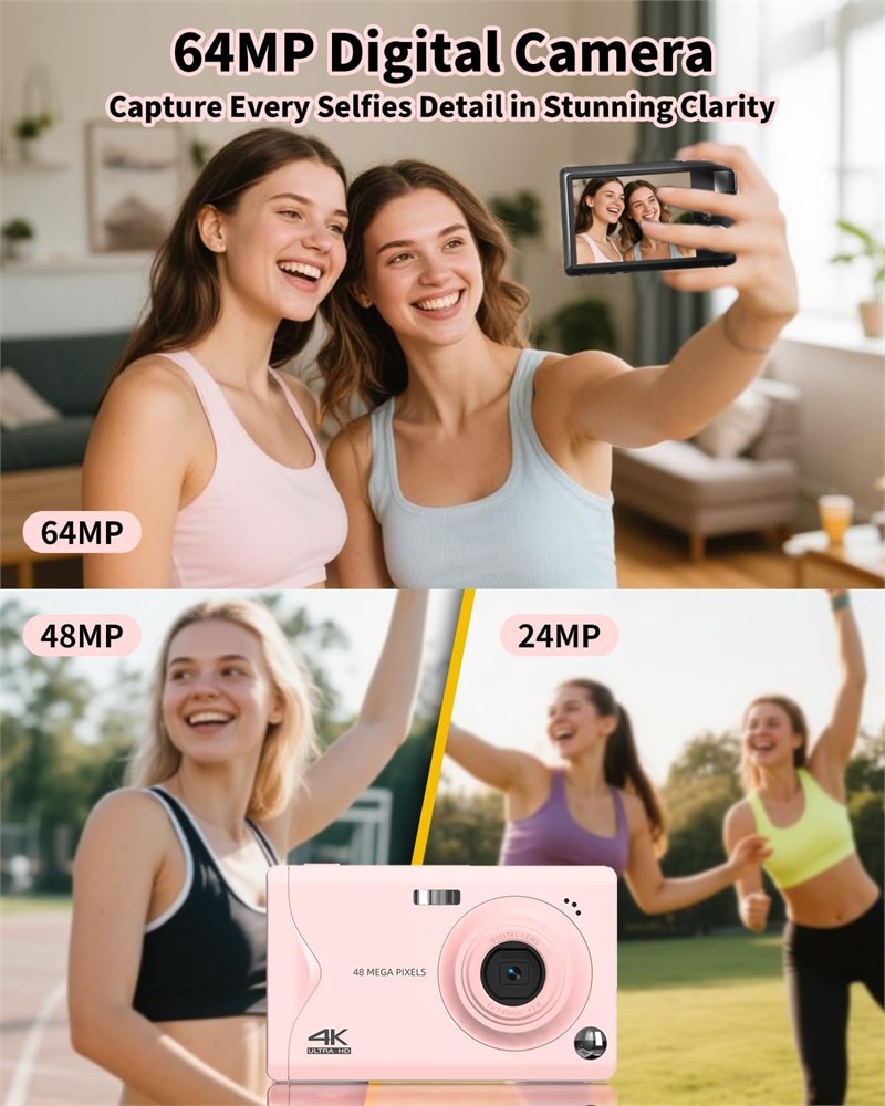 4K HD Image Quality & 16X Digital Zoom Equipped with 4K resolution and a 64MP sensor, it delivers high-definition images packed with rich details. Supports 16X digital zoom, allowing you to effortlessly capture distant details with clarity. Multi-Scenario Shooting Functions for Versatile Needs Combines both photo-taking and video-recording capabilities, with built-in multiple capture modes (including continuous shooting and timer shooting). Features beauty effects and filters, enabling you to take natural, stunning photos and videos without post-editing even beginners can master it in no time. Dual Auto-Focus Modes Offers two focus modes: standard focus and macro focus. Standard focus is perfect for daily photography, while macro focus lets you capture highly detailed close-up shots (such as flower and plant textures, and small object details). Webcam Function + Tripod Compatibility Connect it to a computer via a data cable to use it directly as a webcam ideal for live streaming and video calls. You can also quickly transfer photo and video files. It is compatible with standard 1/4-inch tripod mounts, ensuring stable shooting, reducing blurriness from camera shake, and enhancing overall image sharpness. Compact & Portable with Complete Accessories Boasts a sleek, lightweight body for easy portability. The package includes 1 battery, 1 camera storage bag, 1 32GB memory card, 1 data cable, and 1 wrist strap. Ready to use right out of the box, it s suitable for daily outings, home recording, and more scenarios making it an ideal gift choice.