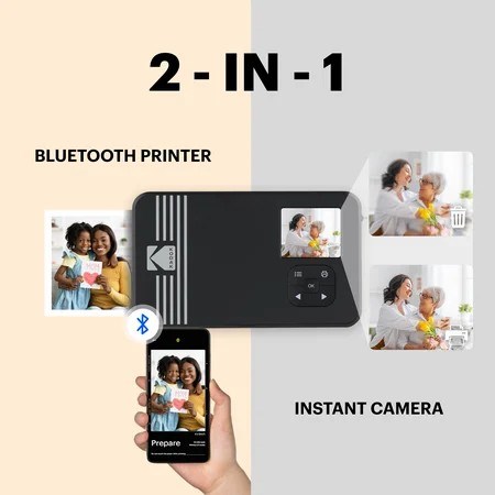 Instant Camera + Photo Printer: The Kodak Mini Shot 2 Retro is a digital camera with a built-in photo printer, so you can print your images or cancel them after you have taken them. With this instant camera, you can also print 2.1x3.4" photos directly from the gallery of your mobile device via Bluetooth. Kodak Mini Shot 2 Retro is compatible with Apple iPhone, iPad & Android devices. Low Photo Cost: Why pay more to print? Printing has never been easier with our Kodak Mini Shot 2 Retro instant print camera. Photos are even half the cost if purchased in an instant film camera bundle! Superior Photo Quality: The Kodak Mini Shot 2 Retro utilizes 4PASS technology, which allows you to print flawless photos in just a few seconds. As the photos are printed on layers of color and laminated, they are protected against fingerprints and water. Photos last over a 100 years! Two Photo Types: It is possible to print both bordered and borderless pictures with the Kodak Mini Shot 2 Retro photo printer. With this instant camera, you can create lasting memories by writing down your memories in the border type. You can print the borderless type of photo if you want to have them in a larger size. Kodak App: Download the KODAK Photo Printer application and print from anywhere at any time. With fun decorative features such as beauty, filters, frames, and more, you can use the app to express your photos. Our app will do the rest of the work for you!