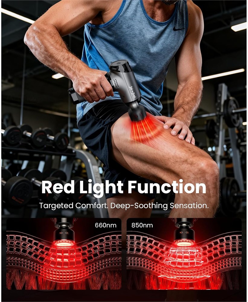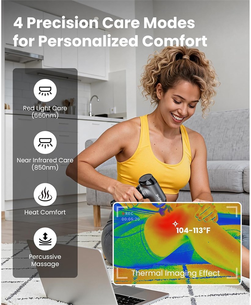 Deep Tissue Massage Gun with Infrared Heating: This T2 Ultra professional-grade massage gun features an infrared heating massage head that delivers deep-penetrating warmth to relax muscles. The advanced infrared thermal waves help muscle relax after intense workouts or long days of activity. This versatile massager is designed for athletes, active individuals, and anyone seeking advanced muscle relax. Professional-Grade Deep Tissue massager with 10mm Amplitude & 45lbs Stall Force: Experience deep muscle relax with the T2 Ultra Massage Gun s impressive 10mm amplitude and over 40 lbs of stall force. This powerful tool penetrates deep into muscle layers to relieve tension and target hard-to-reach areas. With five adjustable speeds from 2000 to 3200 RPM, it s tailored for everyone from casual users to professional athletes delivering fast, effective relaxation. Quiet and Portable Massage Gun: Designed for on-the-go relief (Weighing just 1.9 lbs), this compact massage gun fits effortlessly in your gym bag, backpack, or suitcase. Its ultra-quiet operation (<45dB) makes it perfect for office use, travel, or home without disturbing others. Lightweight yet powerful, it delivers instant relief anytime at home or away. The essential companion for everyday relax. 4000mAh High-Capacity Battery with USB-C Fast Charging: The automotive-grade battery offers enhanced protection while delivering 60% longer lifespan than standard batteries. With 15W PD fast charging, it powers up 40% faster, reaching a full charge in just 2 hours so you spend less time waiting and more time recovering. The USB-C charging port works with all standard chargers (A-C/C-C cables, 5V/2A adapters) for convenient charging anywhere. Gift of wellness for Men & Women: This electric massager features 5 interchangeable heads to target muscles with precision. Its ergonomic design ensures comfortable handling, with a non-slip grip that reduces wrist strain during extended use. Packaged in a premium box, it s ideal for birthdays, Valentine's Day, Thanksgiving, Christmas, or holidays.