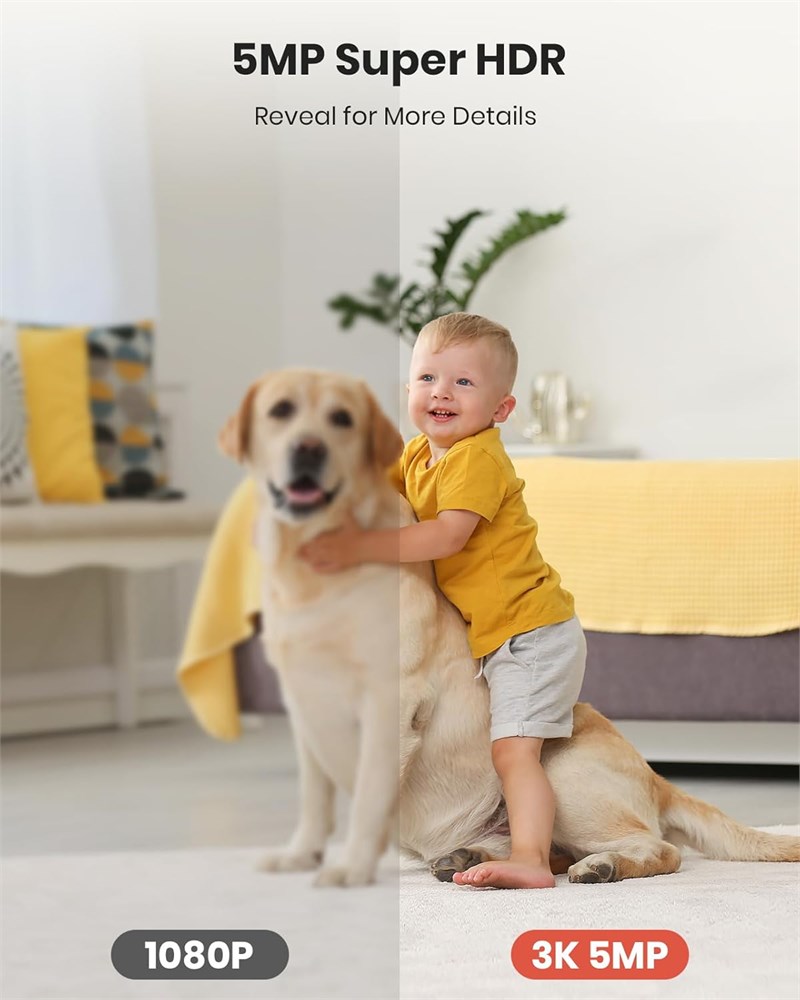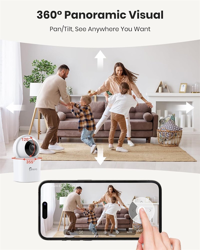 3K HD and 360 upgraded patrol with one click: Camstro interior security camera provides ultra-clear 3K HD live streaming and 4X zoom function, allowing you to clearly monitor the details of your pets or babies. The home security camera can be rotated 360 horizontally and 110 vertically, supports manual 360 cruise scan and 360 timed cruise scan with one click. Intelligent Motion Detection & Infrared Night Monitoring & Vision Equipped with advanced IR motion detection and smart monitoring, the home security camera can instantly receive alerts on your phone when people detect motion or abnormal sounds at home. Automatically record the 6-second alarm video in the cloud and store it for 24 hours. With 4 built-in infrared LEDs and auto-detection activated night vision, the babysitter camera captures a clear night video (up to 33 feet) and monitor your baby's room remotely in complete darkness. Dual directional audio and multi-shared viewing: The internal security camera has a built-in microphone and speaker with real-time two-way talk, which can suppress noise from external sources such as fans and air conditioners to recognize human sounds and increase voice clarity. The pet camera supports multiple users to share images on iPhone and Android through the Camstro smart app. Dual band and pet-friendly WiFi: Camstro children's camera works with 2.4 GHz and 5 GHz WiFi with excellent network performance. Compatible with Alexa and Google so you can ask Alexa for help to watch the video and release your hands. Flexible storage: security camera microSD card (not included up to 128GB) to easily access video on your smartphone, and cloud storage. Support advanced smart cloud artificial scanning, support more accurate alarm messages (paid subscription required for advanced AI cloud, deck people and pets). Your videos are encrypted and AES 256 (international certified encryption protocol) with protected and only accessible on your phone.