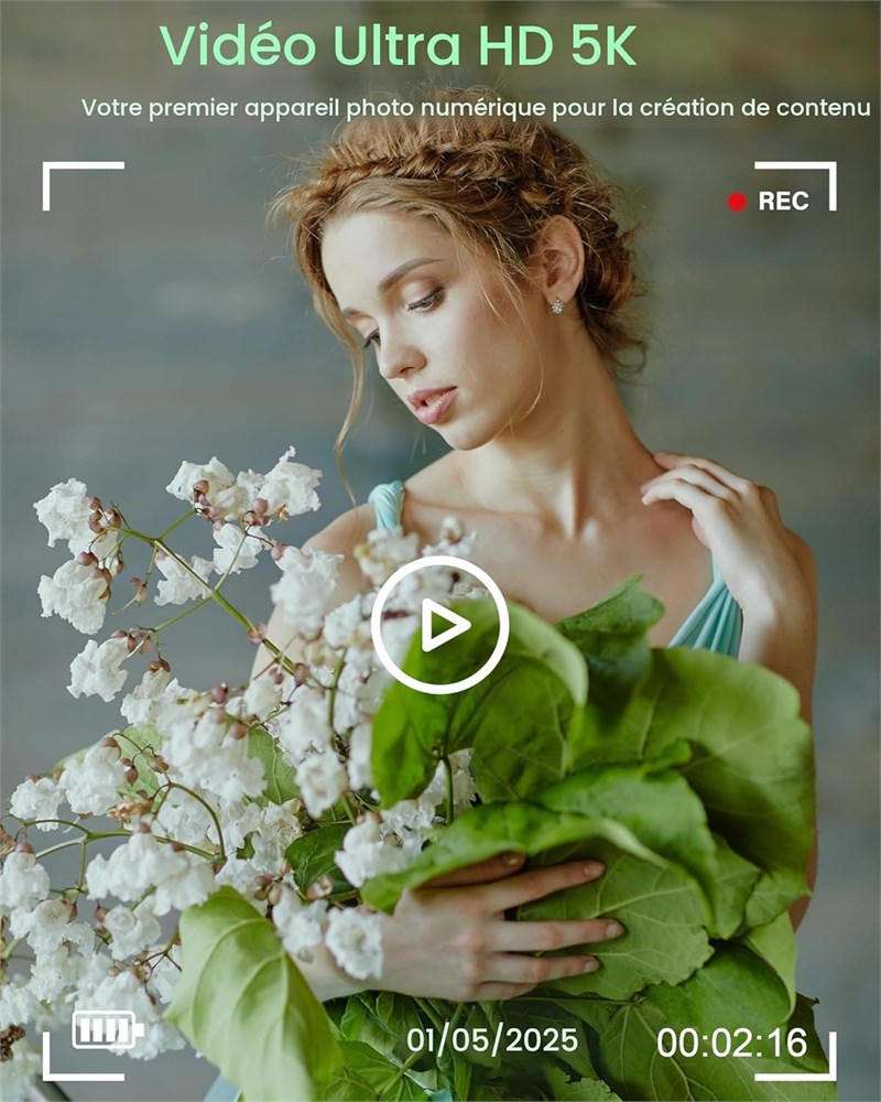Superbe vid o 5K UHD et photos 75 MP : capturez chaque d tail avec une clart couper le souffle avec cet appareil photo num rique UHD 5K. La r solution photo de 75 MP offre des images vibrantes et fid les la r alit , id ales pour les voyages, les r unions de famille, les vacances de No l et les aventures quotidiennes. Que ce soit l'int rieur ou l'ext rieur, vos moments seront toujours beaux Autofocus rapide et zoom num rique 18x : profitez de photos nettes et d taill es n'importe quelle distance avec autofocus intelligent et zoom num rique 18x. Con u pour les d butants, les adolescents, les tudiants et les personnes g es, cet appareil photo permet de capturer facilement des sc nes de voyage, des f tes de No l, des moments de famille ou des d tails en gros plan avec une clart impressionnante WiFi int gr pour un partage instantan : restez connect o que vous alliez. La fonction WiFi int gr e vous permet de transf rer instantan ment des photos et des vid os sur votre smartphone ou tablette. Contr lez la cam ra distance, partagez vos vlogs et gardez vos r seaux sociaux jour en temps r el, aucun c ble n'est n cessaire Piles rechargeables et carte SD 32 Go Prenez des photos plus longtemps avec 2 piles rechargeables et la possibilit d enregistrer pendant le chargement. La carte SD de 32 Go incluse signifie que vous pouvez commencer filmer ou photographier imm diatement, aucun achat suppl mentaire n'est requis. Id al pour les s ances de prise de vues tout au long de la journ e cran rabattable 180 de 3,0" et flash int gr Voyez chaque prise de vue clairement avec l cran IPS de 3,0" qui se rabat 180 pour des selfies et du vlogging faciles. L' cran lumineux haute r solution et le flash int gr le rendent id al pour la prise de vue en int rieur et en ext rieur, vous donnant des r sultats nets m me en cas de faible luminosit.