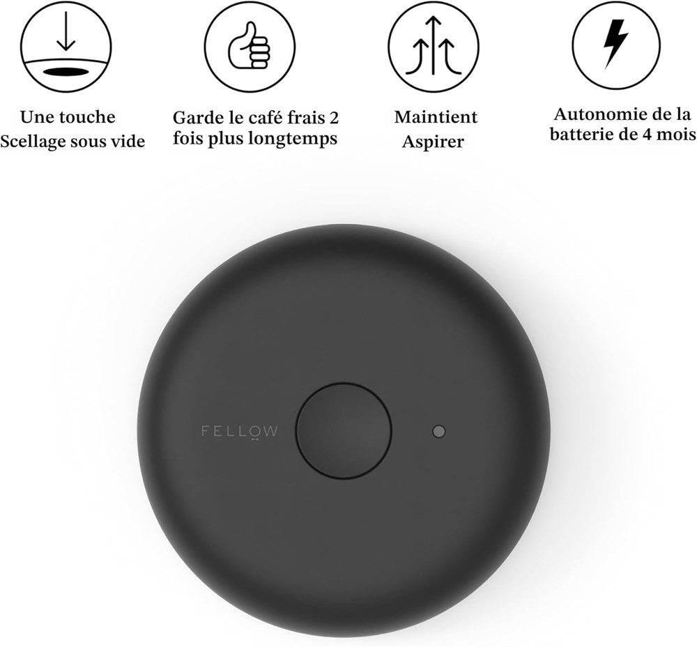 Bo te Fellow Electric Atmos sous vide pour caf et r cipient de stockage alimentaire - R cipients herm tiques scellement automatique pour la conservation des aliments - R cipients caf PROT GEZ LES PRODUITS : Gardez vos grains de caf plus frais pendant plus longtemps avec Electric Atmos, un bocal de conservation scellage sous vide automatique. Appuyez sur le bouton sur le couvercle pour vacuer l'air de l'int rieur, limiter l'exposition l'oxyg ne et aider emp cher vos produits de devenir vici s. UNE PRESSION SUR LE BOUTON POUR UN SCELLAGE SOUS VIDE : Avec une simple pression sur le bouton, Electric Atmos cr e un scellage sous vide en quelques secondes, liminant l air, r duisant l oxydation et pr servant vos produits. MAINTIENT AUTOMATIQUEMENT LE VIDE : Puisque les grains de caf diffusent naturellement du dioxyde de carbone au fil du temps, Electric Atmos surveille continuellement le vide et le compl te lorsque n cessaire. Longue dur e de vie de la batterie : la batterie rechargeable USB-C dure plus de quatre mois d'utilisation quotidienne. Vacances pr vues ? Electric Atmos gardera vos marchandises fra ches jusqu' votre retour.