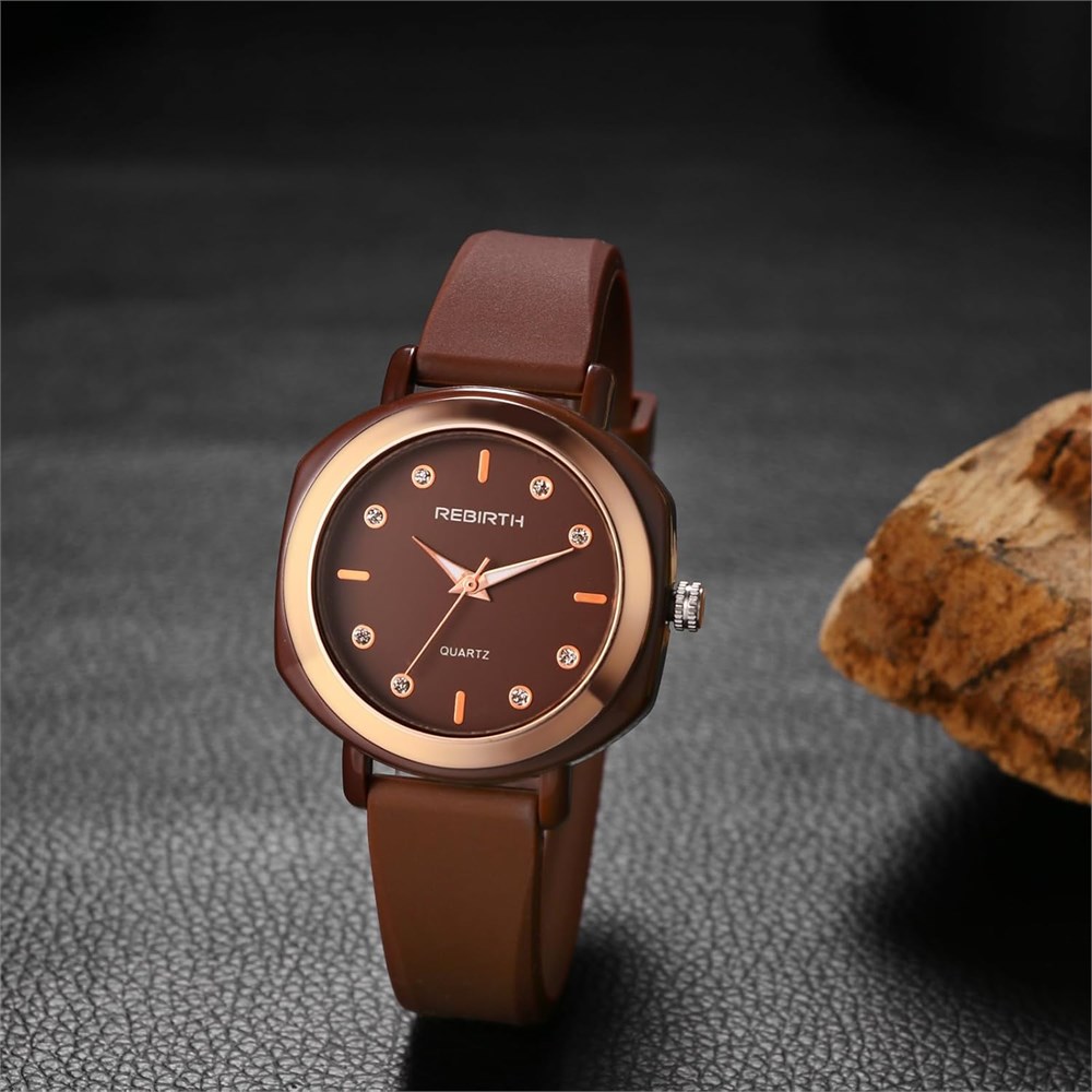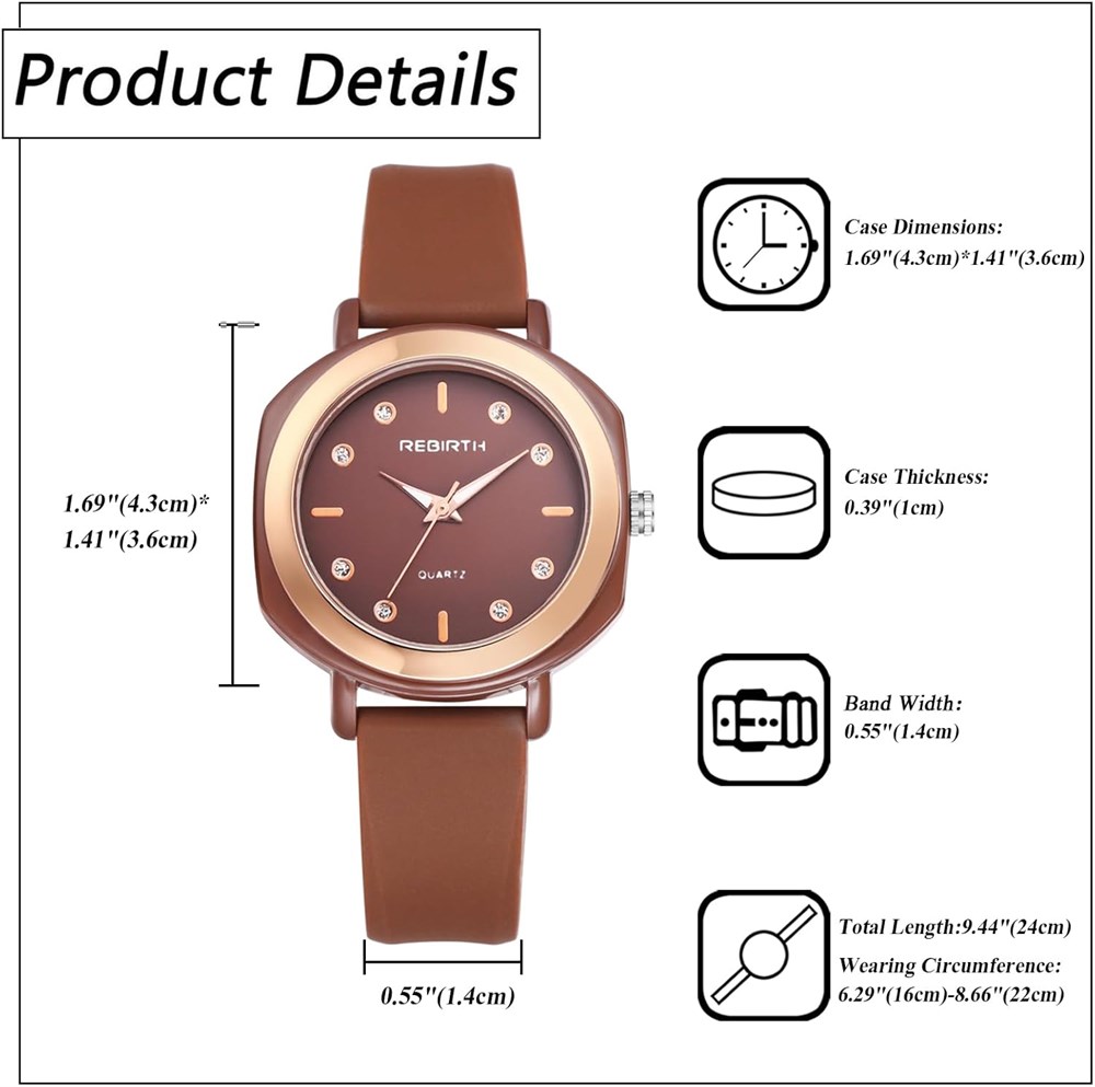 QUARTZ ANALOG MOVEMENT: Features precise quartz movement with diamond indices for an elegant timekeeping experience, ensuring you re always on time for important moments DURABLE AND STYLISH DESIGN: Crafted with a scratch-resistant body and a round-cut bezel, offering a sophisticated look that complements any outfit COMFORTABLE SILICONE STRAP: Made from soft silicone, the strap provides a comfortable and secure fit for everyday wear WATERPROOF CONSTRUCTION: Designed to withstand everyday splashes, making it suitable for daily activities and light water exposure PERFECT GIFT FOR HER: This elegant watch makes a thoughtful gift for birthdays, anniversaries, holidays, or any special occasion.