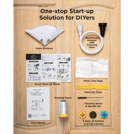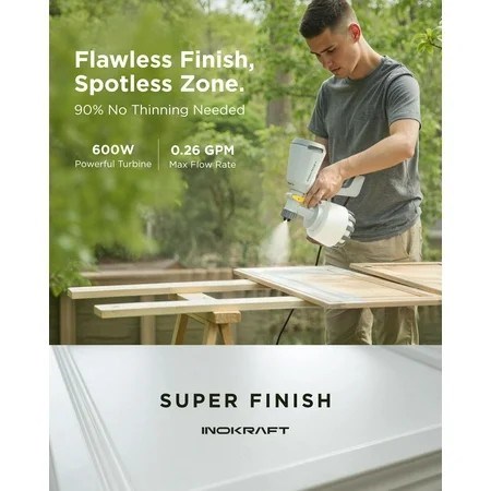 Quick Proficiency for Newbies: The 600W motor with a maximum flow rate of 15.8 GPH delivers smooth, even atomization every time, ensuring a swift start for DIY enthusiasts. The powerful motor s 90% of your paint with no thinning needed, while clogging and overspraying are minimized. Efficient and Elegant Spraying: The innovative magnetic base allows the suction hose to rotate 360 to follow your movements, ensuring continuous paint flow without manual squeezing. You can spray from bottom to top in just one smooth pass, with no stops, no drips, and no mess. Hassle-Free Cleanup: The sprayer comes with a comprehensive cleaning kit and a QuickFlush adapter, which can be quickly connected to the feed tube for a fast and deep system cleaning. It also includes a disposable bag, eliminating the need to wash the paint container. This makes cleaning the HVLP paint sprayer a breeze, allowing you to switch colors rapidly without any messy residue. Versatile DIY Solution: This electric paint sprayer is an ideal choice for DIY projects, equipped with three brass nozzles (1.0, 1.8, 2.6mm) to accommodate fine to medium-sized painting tasks. It is compatible with latex, oil-based paints, and stains, making it a go-to tool for various coating needs.