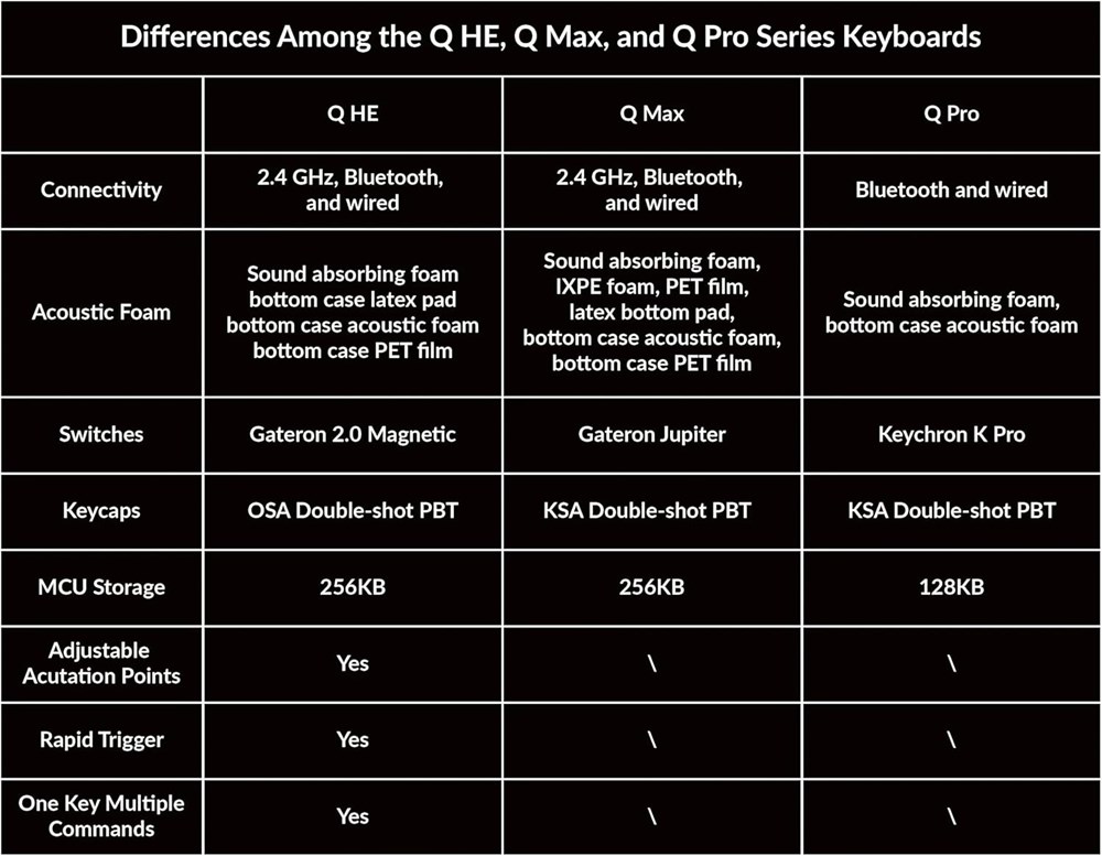Gateron Double-Rail Magnetic Hall Effect Switches: Dual-rail structure and pre-lubed ensures unparalleled stability and smoothness with optimal magnetic sensor sensitivity of 0.1 mm, providing precise feedback Adjustable Actuation Point: Ultra-precise 0.1 mm sensitivity with adjustable points from 0.5 to 3.8 mm for faster response where trigger and reset occur quickly, ensuring swift key presses Multiple Actions Per Keystroke: Assign up to four actions per key allowing for complex commands based on press depth for enhanced productivity and gaming performance Wireless Connectivity Options: 2.4 GHz wireless connection with 1000 Hz polling rate for peak gaming performance, plus Bluetooth 5.1 to connect up to three devices for seamless multitasking Premium Aluminum Construction: 6063 aluminum body provides durable and stable build quality with double-gasket design that reduces acoustic resonance and enhances typing sound Powerful Processing Core: MCU with 256K flash memory supports QMK open-source firmware for flexibility with 1000 Hz polling rate optimal for competitive gaming Cross-Platform Compatibility: Mac and Windows compatibility with system toggle and dedicated keycaps for both operating systems included OSA Profile Double-shot PBT Keycaps: Durable and oil-resistant keycaps provide comfortable typing feel with long-lasting legends that resist fading Hot-swappable Switch Design: Effortless switch swapping capability compatible with Keychron's magnetic switches only for easy customization South-facing RGB LED Lights: Better illumination designed to illuminate the backlight from the typist's angle for enhanced visibility and aesthetics.