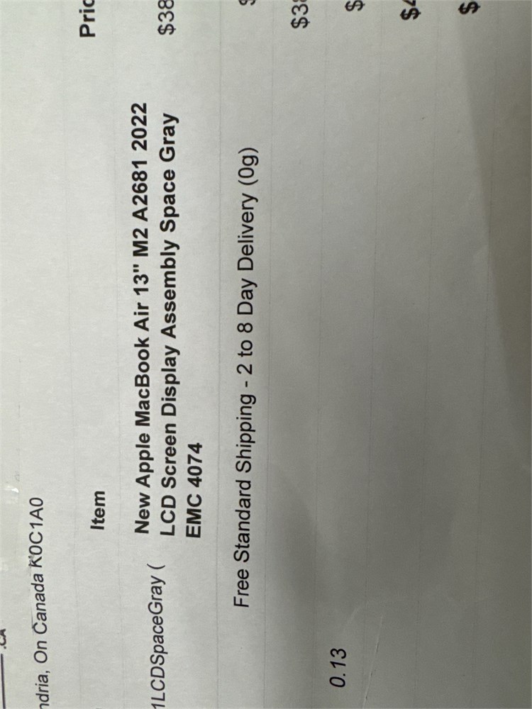 Couleur : gris sid ral. Mod le compatible : remplacement pour MacBook Air Retina M2 2022 A2681 EMC 4074 MLXW3 MLXX3 MLXY3 MLY03 MLY13 MLY23 MLY33 MLY43. R solution de l' cran : 2560 x 1664 ; taille : 34,5 cm ; r tro clairage : LCD LED ; garantie : 3 mois. Le forfait comprend: LCD Assembl e + Coque Arri re + C ble + Webcam Remarque : il ne s'agit que de la partie sup rieure de l' cran, mais pas d'un ordinateur portable complet. Veuillez v rifier le mod le de MacBook A2681 sur le bas de l'ordinateur portable et la couleur de votre ordinateur pour d terminer la compatibilit . Si vous avez des questions sur l'installation, vous pouvez nous contacter tout moment.