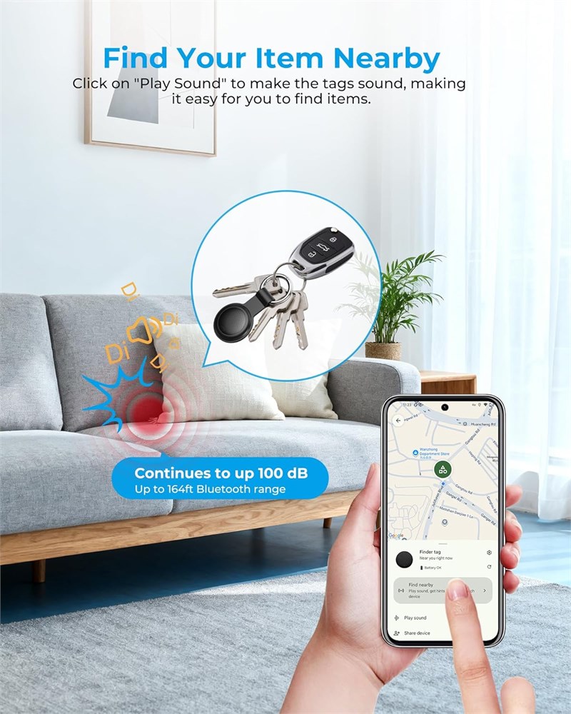 Bluetooth Tracker for Android ONLY The tracker tag designed exclusively for Android devices. Whether your item is misplaced far away or nearby, just activate playing sounds to find it when it's within bluetooth range (50m/164ft), If out of Bluetooth range, See your Smart Tag s last known location on the map and navigate straight to it. The tracker tag works with the Google Find My Device app. (Note: Compatible with Android 9 and above, not for iOS) Mark as Lost & Item Sharing If your item goes missing, activate Lost Mode to receive instant notifications. Find your belongings with the help of hundreds of millions of Google devices in the Find My network. When your tracker is detected nearby by other users, you ll automatically get a notification. Sharing Mode allows you to easily share access to your tracker with family or friends, so multiple people can help locate your valuables. (Note: the tracker tags only works on bluetooth) IP67 Waterproof & Replaceable Battery With an IP67 rating, the tracker tags are protected against heavy splashing and water jets or even brief submersion in water. It comes with CR2032 battery that lasts up to 12 months. Battery life may vary due to temperatures and frequency of use. (Reminder: Please contact AICPAN Support Team for troubleshooting if your android phone does not recognize the tracker) With Keychain and Case Equipped with protective silicone case and keychain. This protective case with a smooth and sturdy surface durable to better protect your tile tracker from scratches, scuffs, drops. The design of the tracker tag is both stylish and functional that easily attaches to keys, bags, luggage, or any other item you want to keep track of. Occupying no space and not affecting daily use, making it ideal for travel or hectic routines. Your Privacy Protected The chip inside this Bluetooth tracker is Google-certified, ensuring your data stays secure. Location data and history are not stored on the tracker tag for public and all your information is encrypted visible to no one, not even the manufacturer. If you often misplace things, this tracker device is a must-have.(Note: There is no monthly or subscription fee to use it)