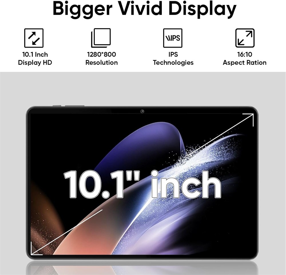 High Performance - The Aiprotablet tablet runs on Android 15 (Not Go) with a 2.0GHz Quad-Core Processor, delivering fast operation and seamless multitasking. Perfect for work, reading, studying, and entertainment Newest Model - This 10-inch Android tablet features Wi-Fi 5 (802.11ac) and Bluetooth 5.0, supporting both 2.4GHz and 5GHz bands, which greatly improves connectivity stability and internet speed Massive Storage - The tablet comes with 64GB ROM and expandable up to 1TB via microSD card (not included). It comes preloaded with the Google Play Store, so you can easily download any apps you need HD Large Screen - The tablet is equipped with a 1280x800 low blue light LCD touch screen, which provides clear visuals and vivid colors, ideal for streaming videos, browsing, and comfortable reading Durable Battery - With a long-life 6000mAh battery that provides up to 5 days of continuous standby or over 6 hours of use, and fast charging via the Type-C port, you can enjoy your tablet to the fullest.