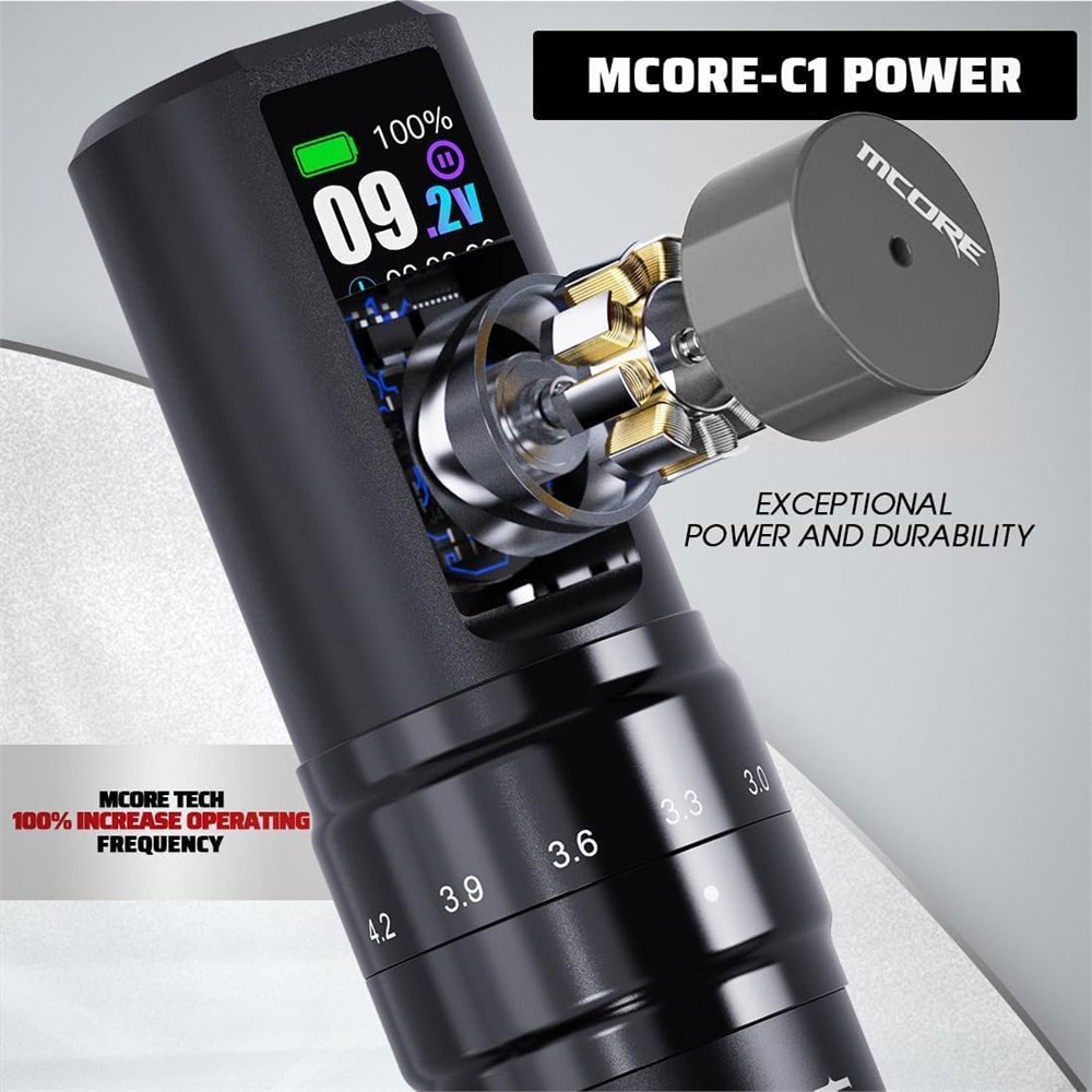 Pistolet tatouage sans fil : Mast Fold2 Pro longueur 140 mm, poids 233 g, poign e standard de 32 mm pour un excellent contr le confortable, fonctionne jusqu' 7 heures. Longueur r glable 7 temps : ce stylo de tatouage offre 7 options de 2,4 mm, 2,7 mm, 3,0 mm, 3,3 mm, 3,6 mm, 3,9 mm, 4,2 mm. Changez votre trait la vol e simplement en tournant le bouton de r glage, vous permet de tatouer dans n'importe quel style avec facilit , excellent pour appliquer le noir et le gris, la couleur d'emballage et le m lange et la doublure. La technologie de tatouage de m t vous donne plus de choix Pour Tattoo Creative Studio : la machine tatouer Fold2 Pro a t con ue pour offrir la performance de tatouage exig e par les experts, sp cialement con ue pour cr er une doublure et un ombrage cr atifs professionnels, le tout avec la libert d'un stylo de tatouage; destin un usage professionnel uniquement. 2 piles de tatouage de remplacement. Puissance : batterie facile remplacer, permet un travail de tatouage long terme, sortie stable. La tension de sortie de 8 V peut fonctionner pendant 7 heures, il suffit de 1,5 2 heures pour charger compl tement. Le c t de la batterie a un cran OLED visible, tension r glable 0,1 V, tension de fonctionnement de 4 12 V. Aliment par la technologie de moteur Mcore-C1 : pistolet de tatouage Fold2 Pro emball avec moteur Mcore-C1, le moteur Ultra Power No-Snag permet une puissance et une durabilit exceptionnelles et glisse travers la peau la plus paisse sans s'accrocher ou tirer, il permet la machine d'avoir un bon quilibre entre les lignes et l'ombrage, et parfait pour les doublures et l'emballage de couleurs exigeants. Utilisation polyvalente : sans fil pour une utilisation pratique et diff rents coups fonctionnent pour tous les styles d'art et de beaut .