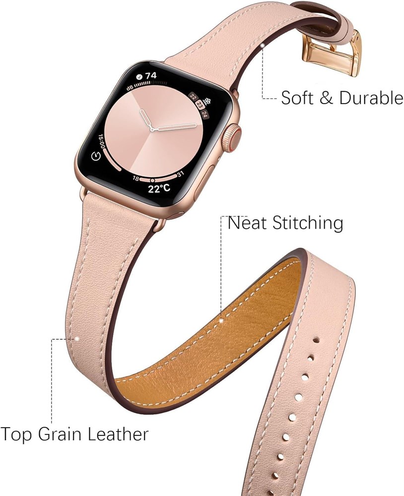 Fit Size: Compatible with iwatch Series 11/10 (42mm), 9/8/7 (41mm), SE 3/SE 2/SE/6/5/4 (40mm), 3/2/1 (38mm). Fits 5.3-6.9 in(135-175 mm) wrists. You can check the back of the watch to confirm your watch model Soft and Sturdy: After three processes of tanning, dyeing and finishing, the leather has the ability to resist external influences, and gives the leather strap soft and long-lasting properties Neat Stitching: Straight and uniform stitching improves the firmness and beauty of the wristband, without rubbing against the wrist skin Top Grain Leather: The strap is made of top grain genuine leather, with a natural surface texture, and is refined and modified by professional artisans to further enhance its quality Classic Black and Brown: Black, with its refined and poised demeanor, is a perfect match for business and formal occasions. Brown, embodies warmth and a vintage charm, making it ideal for casual ensembles.