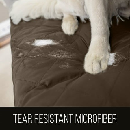 Protects From Stains And Messes: perfect for homes with kids and pets, covers are stain and fade resistant; durable tear-resistant microfiber cover helps protect your furniture from everyday wear including pet hair, dirt and messes; long arm and back flaps help to protect hard to clean areas Stay In Place Patented Strap Design: patented 2 inch thick slip-resistant straps help to keep cover secure; ultra durable hooks made from premium zinc alloy; straps feature an adjustable length for a customized fit and maximum protection; longer over the arm and back flaps help to keep cover in place Stylish Reversible Design: stylish quilted microfiber is ultra soft and comfortable while adding a stylish look to your furniture; reversible 2 in 1 design allows for multiple styling and color options at no extra cost More Generous Sizing For A Perfect Fit: thoughtfully designed for generous coverage across furniture widths, arms and backs; available in many sizes for a customized fit; please measure and reference size guide in listing photos prior to purchase; shop our entire collection of premium furniture covers for a coordinated look available in chairs, loveseats, sofas, recliners, and chaise lounges Easy To Install And Clean: cover is extremely quick and easy to install; position cover over furniture with arm and back flaps loosely in place; tuck into furniture grooves then clip and adjust the elastic strap along the back of the sofa; to clean, simply machine wash and tumble dry as often as needed with lasting color Not recommended for leather furniture.