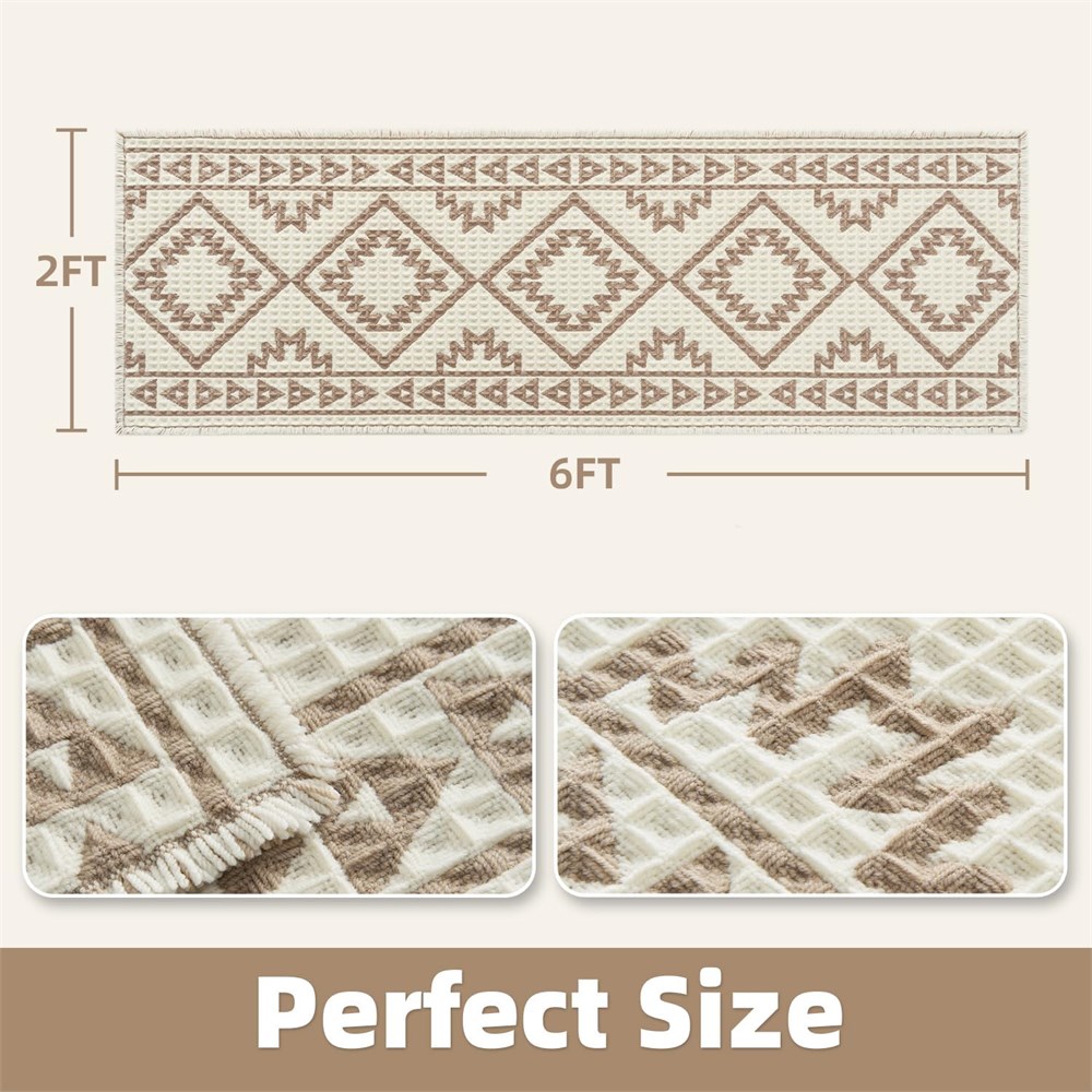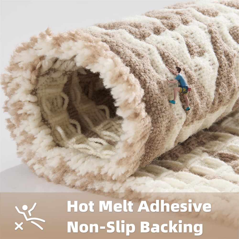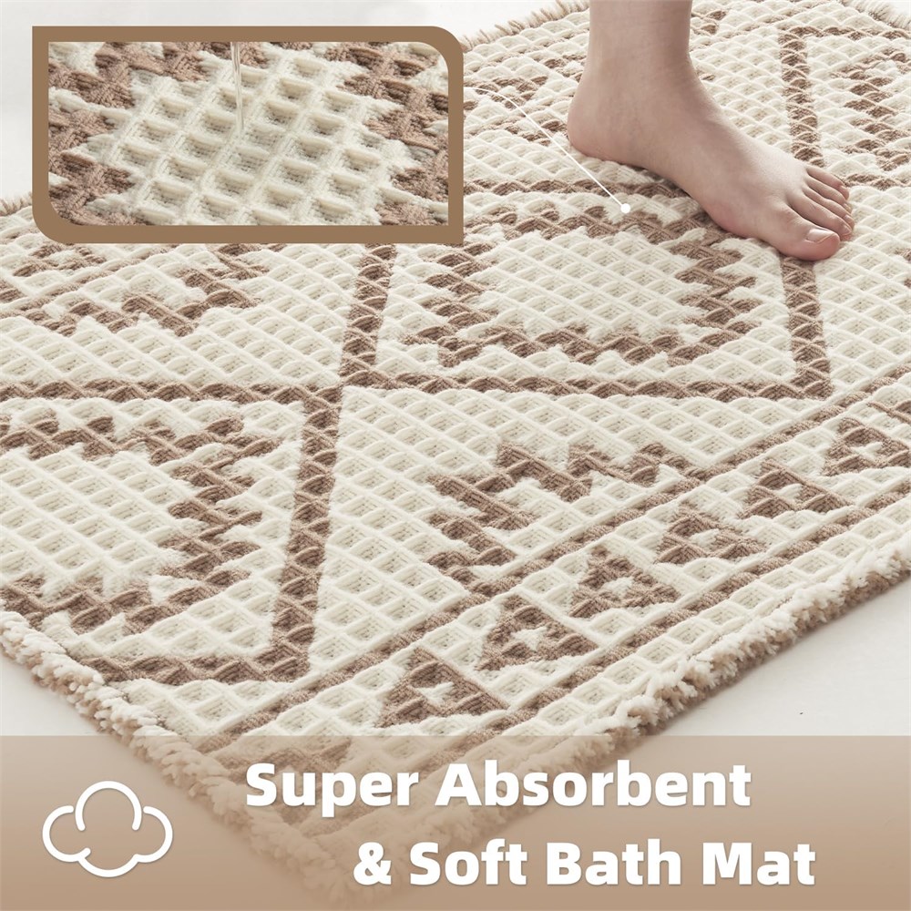 Advanced Absorbency: Crafted with advanced dual-layer waffle weaving, bath rug absorbs water three times faster than standard bathmats, as proven by laboratory tests. Airflow-optimized design encourages quick evaporation, ensuring lasting dryness. Additionally, bathroom mat protects against cold floor transfer, helping your feet maintain warmth even on chilly tiles. Premium Waffle Bath Mat: Made with innovative dual-tone yarns in a tightly woven waffle design, Moroccan bath mat offers plush, exceptional softness beneath your feet. Stylish tassel accents enhance your bathroom decor, while the reinforced construction promotes long-lasting durability. Advanced Anti-Slip Protection: Utilizing cutting-edge HMA (Hot Melt Adhesive) technology, bathroom carpet offers improved slip resistance compared to traditional rubber mats. Bathroom floor mat innovative non-slip base creates a robust bond with tile flooring, helping improve bathroom confidence for both children and elderly to help reduce slip risks. Multi-Use Bath Collection Designed with advanced softness technology, bath mats for bathtub enhances daily routines into spa-inspired comfort. Available in various sizes, shower rug caters to all areas of home, including bathrooms, bedrooms, vanities, laundry rooms, kitchens, and entryways. Easy Care Instructions: Crafted for convenient maintenance, bathroom runner rug is machine washable (recommended using a laundry bag with cold water on a gentle cycle). Just air dry bathmat naturally to restore plush texture avoid high-temperature drying to maintain quality. With proper care, bathroom mat is designed to maintain performance wash after wash.
