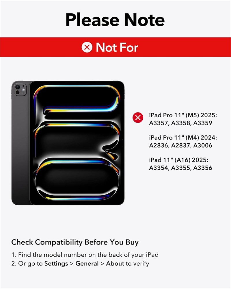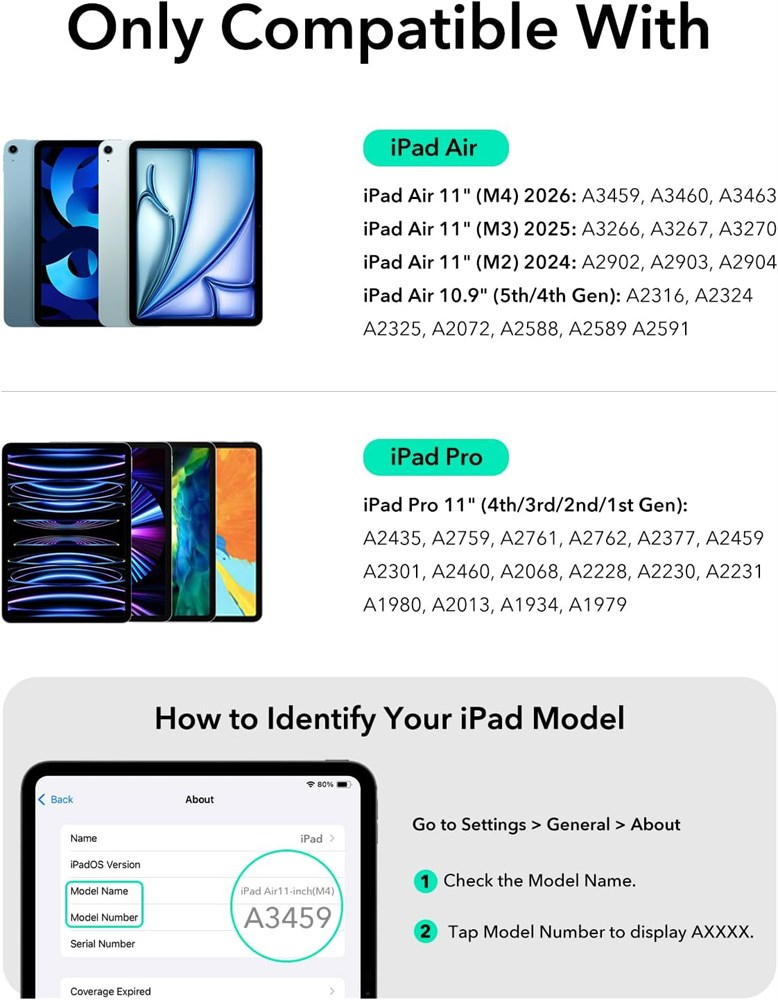 Compatibility: only compatible with iPad Air 11 inch(2024), iPad Air 6th Generation (2024), iPad Pro 11 inch (2022/2021/2020/2018), iPad Air 5th Generation (2022), and iPad Air 4th Generation (2020); models A2759, A2435, A2761, A2759, A2435, A2761, A2316, A2324, A2325, A2072, A2377, A2459, A2301, A2460, A2068, A2228, A2230, A2231, A1980, A2013, A1934, and A1979 Work from Anywhere: upgrade your iPad to getting stuff done mode and embrace the remote work revolution with full MacBook functionality built right into your case Easy-Set Magnetic Stand: the floating cantilever design allows your iPad Pro 11/iPad Air 5/4 to float stylishly over your keyboard and gives you the perfect angle just by opening the case Navigate Quickly and Easily: the precision trackpad with full multi-touch gesture support lets you browse the web, build presentations, and edit documents at unparalleled speed Control at Your Fingertips: the full row of shortcut keys take this iPad Pro 11/iPad Air 5/4 keyboard case to the next level by letting you snap that screenshot, control your audio, or go back to the home screen from the keyboard.