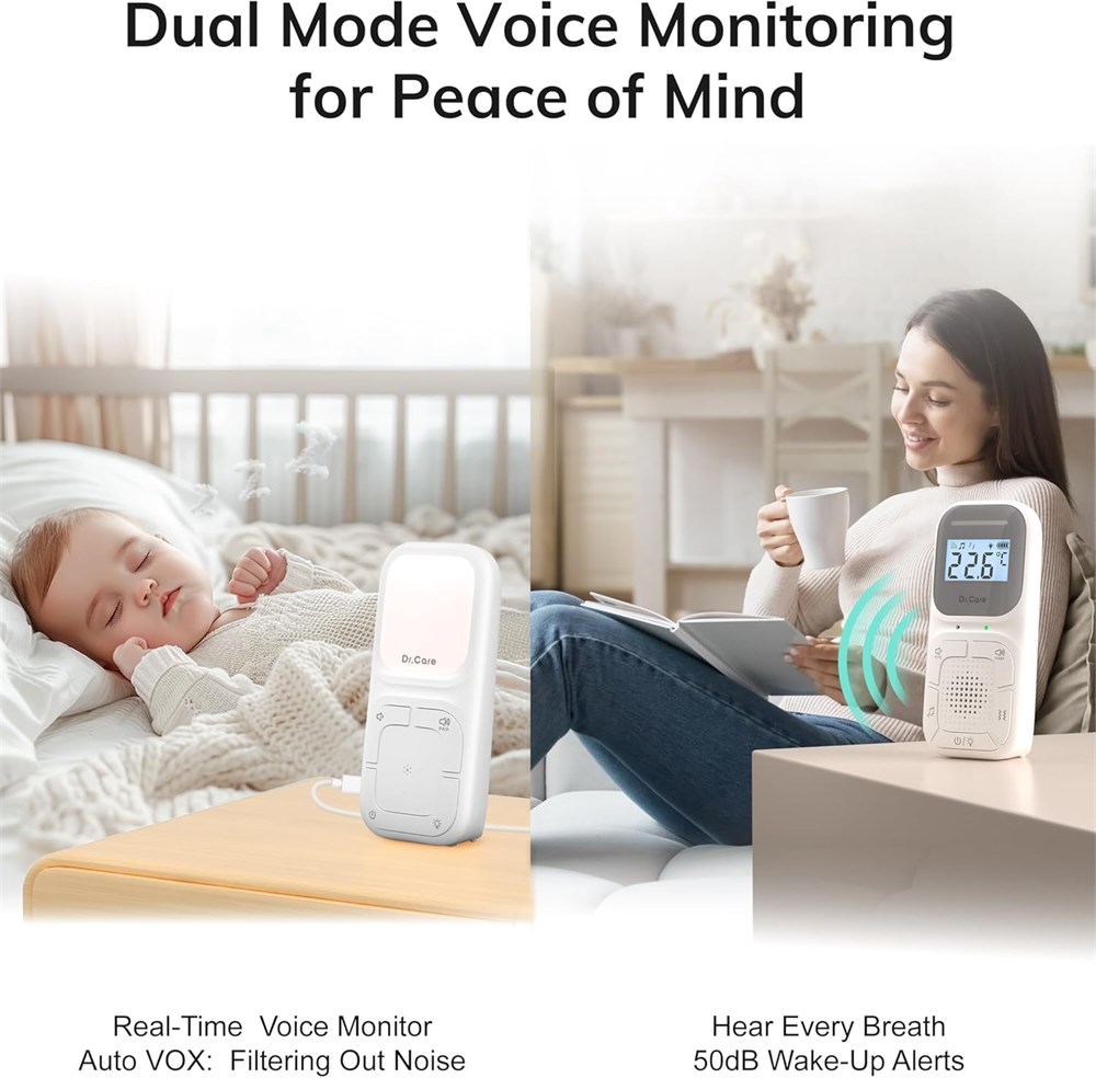 Capture Every Little Sound: Packed with high-sensitivity microphones that pick up every little sound and breath from both sides with remarkable clarity. Roam freely around your home while staying connected to your loved one from a distance up to 1000ft away. Discreet Vibration Alert: Set the device at vibration to ensure that you stay informed about your baby's needs without disturbing the tranquility of your home, ideal for parents who value a quiet environment for themselves and their partner. Care Together With Dual-Parent Monitoring: With dual parent units, both parents can tackle their daily tasks around the house while staying seamlessly connected to their loved one in the room. When you are cooking in the kitchen and your partner are working in the home office, both of you are always in tune with your baby's needs. Portable Clip for Easy Portability: Built-in portable clip, allowing you to securely fasten it to your belt or pocket so you can keep watch over your baby wherever you go, whether you're cooking in the kitchen or cleaning in the living room. Clear two-way communication: Hear your baby's sounds and movements with precision and talk directly to your baby from anywhere. The 5-level volume adjustment ensures that the sound is always comfortable, making every word between you and your baby heard with clarity. The parent unit offers up to 16 hours of battery life, providing peace of mind from morning till night, and it fully recharges in just 3 hours to ensure continuous monitoring. Note: The baby unit needs to be plugged in for use.