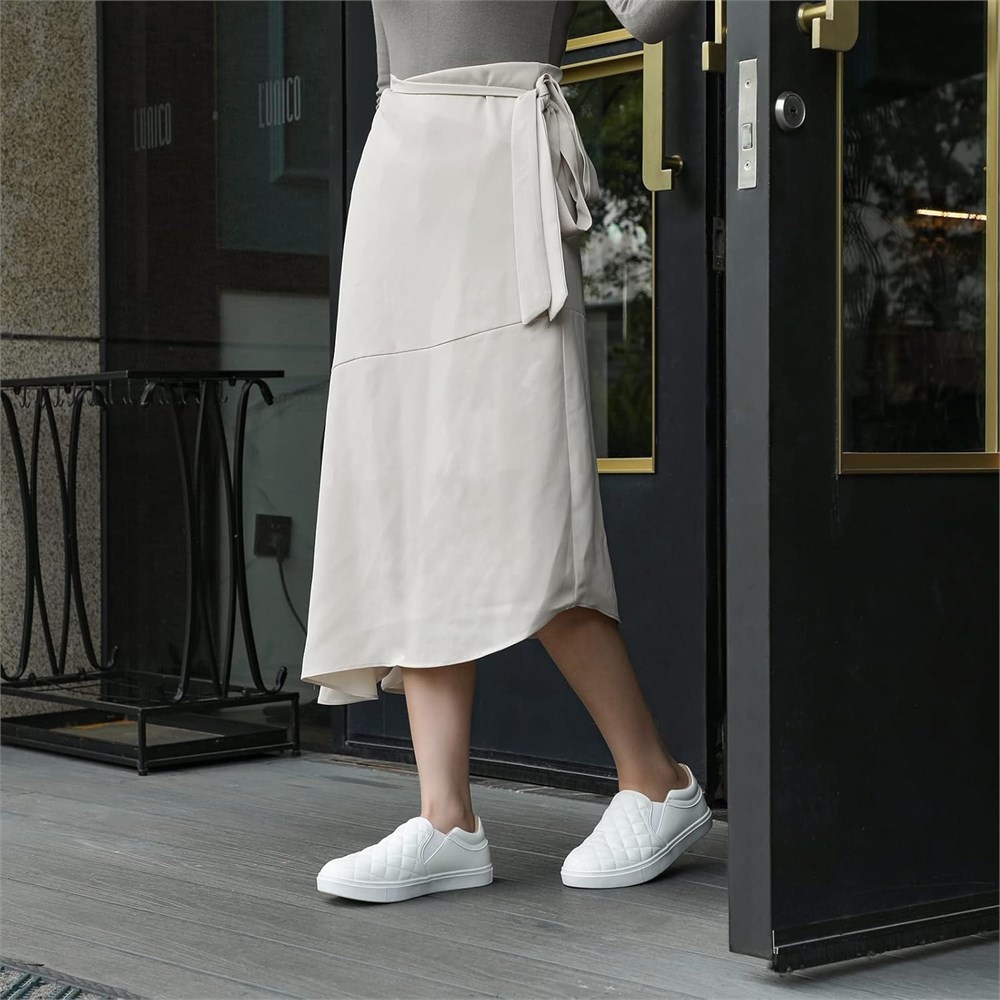100% Vegan Faux Leather: Women's slip on shoes with quilted pattern decoration, made of 100% vegan faux leather.Whether you're heading to the office, walking or driving, these slip on shoes are perfect for jeans and other styles of clothing Slip On Closure: Elastic band on each side with elastic bands for a snug, comfortable fit with no tying required, these women's fashion sneakers are easy to put on and take off Designed No Blister Heel: Ergonomically designed heel part, prevent blisters and bring you all day comfort when walking, shopping or driving etc Soft and Durable Rubber Outsole:STQ women's slip on loafers with soft and durable rubber sole with 2 mm wavy grain for better traction Quick Drying and Bouncing Insole: Inside of these women's slip on sneakers feels like stepping on pillows. Cushioned and sweat absorbing material give you a comfortable and dry wearing experience.