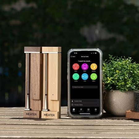 Direct Heat: Grill up to 1,000 F! You can leave the probe in the meat over an open flame while cooking and searing. A must have tool to add to your grilling and bbq accessories lineup! Smart Temp Multisensor Technology: MEATER Pro / 2 Plus finds the true lowest temperature of your meat, guiding you to the perfect meal. 100% Wireless: Say goodbye to tangled wires and limited mobility. The MEATER Pro / 2 Plus is completely wireless, allowing you to monitor your cooking via Bluetooth Coded PHY long range. Enjoy hassle-free cooking whether you're in the kitchen, backyard, or patio. Easy to Use and Clean: Designed with simplicity in mind, the MEATER Pro / 2 Plus is easy to set up and use. It's waterproof so you can sous vide and clean it in the dishwasher. Accuracy: lab tested through a 3-point calibration process, the sensors are 0.5 F, and each MEATER Pro / 2 Plus comes with a Certificate of Calibration. Fast Charging: by the time you finish exploring the MEATER app, you're charged for your first 2-hour cook. A short 15-minute charge is enough to last 12 hours. 30 minutes gets you 24+ hours. Smart Connectivity: Connect your MEATER Pro / 2 Plus to the free MEATER app, available on iOS and Android. Receive real-time alerts and notifications on your smartphone or tablet, making it easy to monitor your cooking progress. Set custom alerts, timers, and even use guided cooking assistance for a variety of meats and recipes. App requirements: iOS, version 14 and later. Android, version 8.0 and later. Bamboo Block Charger: The stylish bamboo block not only holds your MEATER probe but also serves as the charger, ensuring your wireless meat thermometer is always ready for use. Perfect Gift for BBQ Lovers & Chefs: Give the ultimate grilling and cooking experience with the MEATER Pro. Whether for holidays, birthdays, or special occasions, it s the must-have gift for anyone who loves perfectly cooked meat every time! Always on the list for top grilling gifts for men.