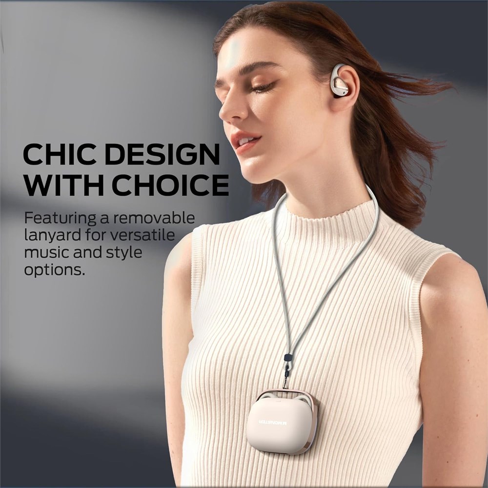 Pure Monster Sound-Experience the impressive audio performance of the Monster Open Ear AC520 headphones. Featuring advanced Monster HiFi sound technology,these open ear headphones deliver rich, dynamic sound with deep bass and crystal-clear highs. Unique Handbag Design-Discover the Unique Handbag Design Open ear earbuds,where style meets comfort.The Monster headphones feature a sleek slide-open mechanism,allowing you to enjoy music without compromising on fashion.The removable lanyard adds versatility to your music and style,letting you wear them your way. 24H Long Playtime-Experience up to 8 hours of uninterrupted listening on a single charge,and extend it to 24 hours with the charging case.Whether on a long journey or during a busy workday,the Bluetooth headphones keep you powered up and enjoying your favorite tunes. IPX6 Water Resistance-With an IPX6 water resistance rating,the Monster wireless earbuds are built to withstand sweat and rain.Whether you re hitting the gym or braving a rainy commute,you can stay focused on your activities without worrying about water damage. Advanced Bluetooth 6.0-Equipped with the latest Bluetooth 6.0 technology,Monster bluetooth earbuds deliver a fast and stable connection.The wireless headphones ensure a low-latency listening experience,with audio and video perfectly synchronized and free from delay. Surround Awareness & Safety-The Monster Open Ear keeps you in tune with your surroundings,boosting your safety outdoors and facilitating seamless interactions in the office.Monster earbuds let you enjoy your music while still picking up on important sounds and conversations around you.