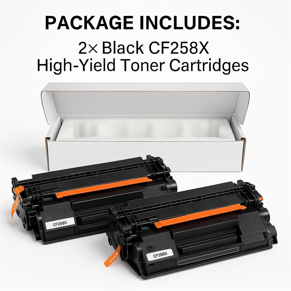 Superior Quality Prints High-efficiency 58X toner cartridges with integrated original chips deliver sharp, clear text and professional-grade results every time. What You Get 2 Black CF258X High-Yield Toner Cartridges in secure, protective packaging ideal for reliable everyday printing. Works just like HP 58X / 58A CF258X / CF258A Wide Printer Compatibility 100% compatible with: HP LaserJet Pro MFP M428dw / M428fdn / M428fdw HP LaserJet Pro M404n / M404dn / M404dw HP M304n / M304dn, M406, M430 High Page Yield Print up to 10,000 pages per cartridge (Letter/A4 at 5% coverage) perfect for business, home office, or bulk printing needs. Original Chip Preinstalled No chip transfer required! Our cartridges come ready to install with built-in original chips for seamless recognition by your printer.