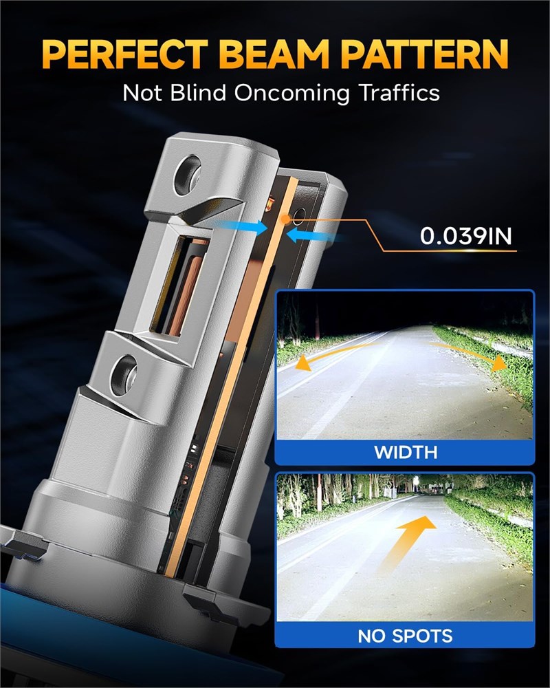 Longue dur e de vie de plus de 60 000 heures : l'ampoule H11 dispose d'un design avec un corps enti rement en aluminium a ronautique et une plaque de base en cuivre pur, assurant une dissipation efficace de la chaleur. Avec cette construction robuste, l'ampoule b n ficie d'une dur e de vie impressionnante de plus de 60 000 heures, offrant une utilisation long terme sans remplacement fr quent et conomisant de l'argent et . Faisceau avanc : Les ampoules LED H9 adoptent un design de faisceau 1:1 et une carte de cuivre puce ultra fine de 0,039, assurant un motif de faisceau lumineux parfait 360 sans points sombres. Cette technologie avanc e fournit un faisceau stable et coh rent, am liorant la s curit de conduite en vitant les impacts n gatifs sur les v hicules venant en sens inverse. Installation rapide : la taille des feux de brouillard H8/H9 correspond 1:1 avec les ampoules, facilitant un remplacement rapide et facile Plug and Play. Sans bases encombrantes, c blage externe ou pilotes externes, ces feux de brouillard offrent un processus d'installation sans tracas, ne n cessitant aucune comp tence professionnelle. 99 % de compatibilit avec les v hicules : les ampoules LED H11/H8/H9 sont livr es avec un pilote int gr mis niveau avec la derni re technologie, assurant la compatibilit avec 99 % des syst mes du v hicule. Dans de rares cas o des d codeurs CANBUS suppl mentaires sont n cessaires, les clients peuvent contacter pour obtenir de l'aide.