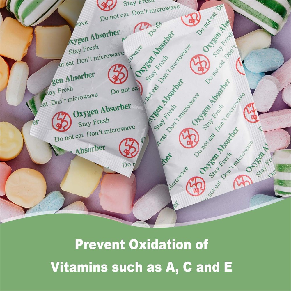 WVacFre Oxygen Absorber is the highest quality in the industry for long-term food storage Oxygen Absorber is the best natural-freshness preserver that Retain flavors of ingredients and freshness in foods Packet Material is food grade compliant & strictly tested for food purpose and 3 times oxygen absorption capacity Oxygen Absorbers Packets help food extend shelf life,Oxygen absorbers packs remove oxygen from sealed food containers Oxygen absorber have best function to prolong shelf life for oil food and without oil food , must need use Anti oil oxygen absorber if food with much oil so could be assure oxygen absorber could smoothly absorb oxygen.