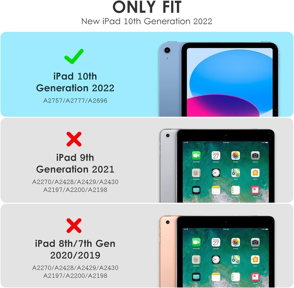 Compatibility - This DTTO case only design for iPad 10th Generation 10.9-inch (model number: A2696/A2777/A2757 ) 2022 New Release. Not fit any other iPad models. Please check back bottom of your iPad to find the model. Multi Function - Built-in magnetic strip provides sleep/wake feature. The cover can be flipped back to insert a buckle, providing two stable support modes for viewing and typing. Apple Pencil Holder - Built-in pencil holder conveniently places and easy push out your pencil via the hole in the back, easy to carry and avoid losing (Note: Apple Pencil is NOT Included). Premium Material - Premium synthetic leather and comfort non-slip microfiber lining fully protect your iPad from shocks, scratches and dirt. Precise cutouts with easy access to all controls and features. Convenient Service - The convenient interior hand strap gives you a comfortable single-handed use experience.