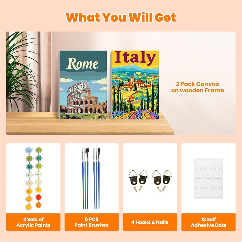 2-Pack Paint by Numbers Kits for Adults, City Landscapes, Framed Canvas 8x12 View Watchlist >