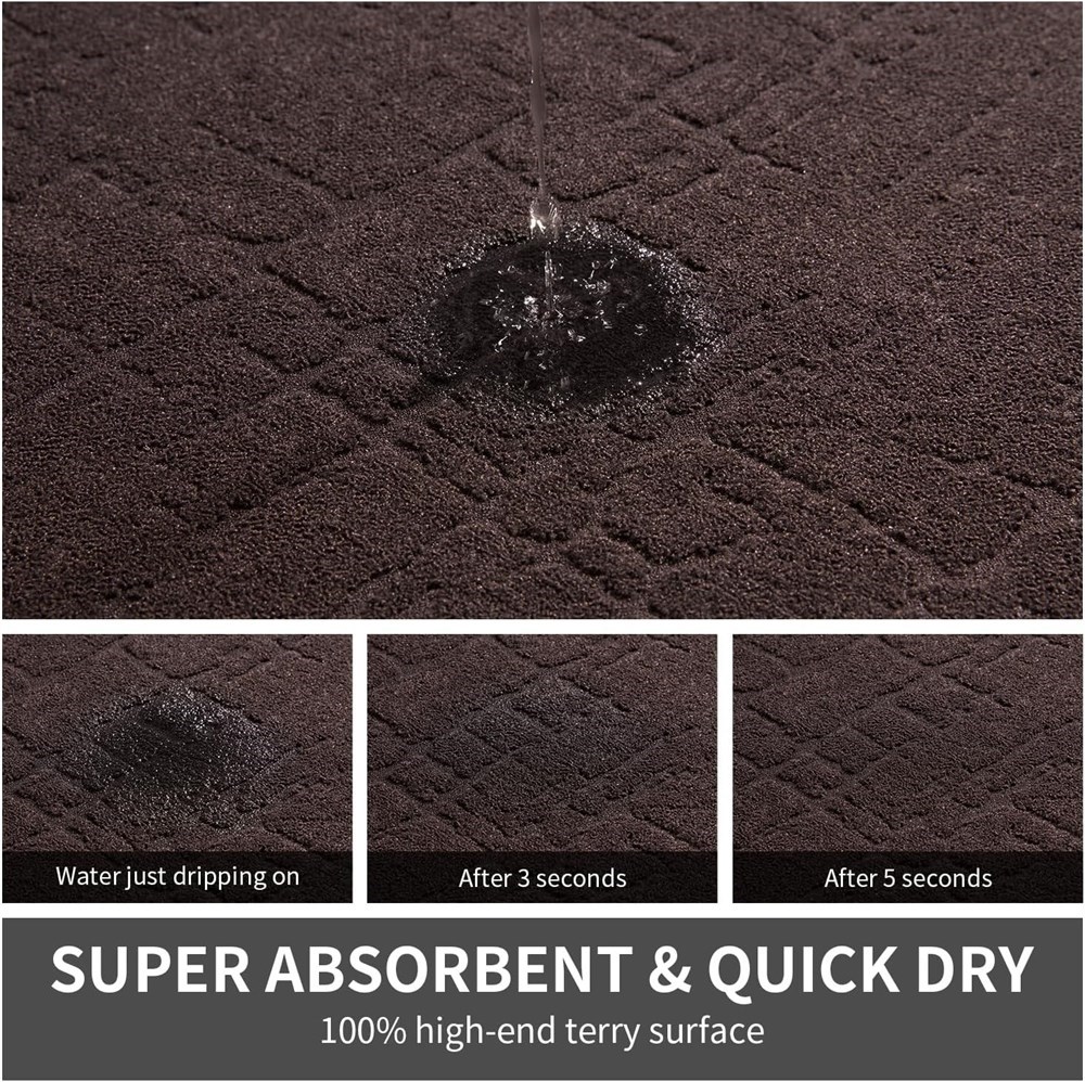 SUPER ABSORBENT&QUICK DRY: Bathroom mat with short fiber designed for quick water absorption and rapid evaporation, its powerful quick-drying function keeps bath mat free from dampness and unpleasant smells, maintaining a clean and fresh bathroom environment for you. Experience constant warmth and comfort with this reliable bathroom rug. ANTI SLIP&WATERPROOF: Bathroom mats with textured bottom stays in place even on wet bathroom floor. Waterproof backing prevents water from seeping to protect floor while avoiding slipping. Heavy-duty rubber material stops edge curling and tripping. Non slip bath mat Providing comprehensive protection and care for your family, especially for the elderly and children. MACHINE WASHABLE: Unlike plush bathmat, bath mats with short fibers resist trapping dust and dirt, making cleaning a breeze with simple wipe or rinse. More surprisingly, this bath mats for bathroom is machine-washable without any fading, shedding, or tearing, compatible with robotic vacuums and mops. Say goodbye to the hassle of cleaning with our bath mat. SOFT&3D EMBOSSED: Bathroom rugs with soft and soothing sensation, like a gentle foot massage. Whether in morning cleaning or evening bath relaxation, this bath mat offers comfortable support for feet, enveloping you in warm and caring bathroom decor. Aesthetic pattern elevates every moment in bath and infuses grace and refinement into everywhere in your life. LOW PROFILE&VERSATILE: Thin bathroom mat fits under doors seamlessly and allows easy passage for robotic vacuums and wheelchair. Perfect bath mat in various areas in your home with no tripping hazard, can be laundry mat, kitchen mat, pet feeding mat, desk mat, sink mat, or RV bathroom. Ideal bathroom accessories for your everyday household needs.