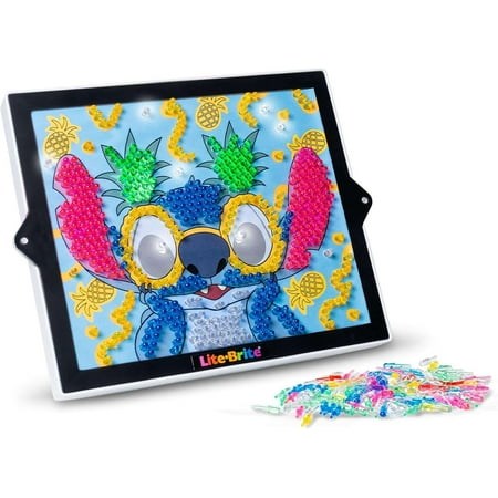 Now Stitch fans ages 6+ can create art with light that truly POPs using 1 of the 6 ColorPOP templates with full color scenes and a first-time ever translucent, HD screen. Choose from six ColorPOP templates inspired by Stitch in high-definition-like Pineapple Stitch, rockin' silly shades in front of a wacky, squiggly pineapple pattern; Stitch & Angel sharing a heartwarming moment; or Cool Stitch, chillin' in shades because the future's just too bright to handle! Plus, scan the QR code on the package to download and print additional templates at home. Includes 650 Mini-Pegs-smaller and slimmer-for ultra high-definition, colorful art that truly shines. Perfect for detailed designs, these Mini-Pegs help you create masterpieces that pop with precision and flair. Choose from four light modes-steady light, bounce, flash, or clockwise. Light turns off after five minutes of inactivity. Or, hold the power button for 5 seconds to keep the light on continuously.