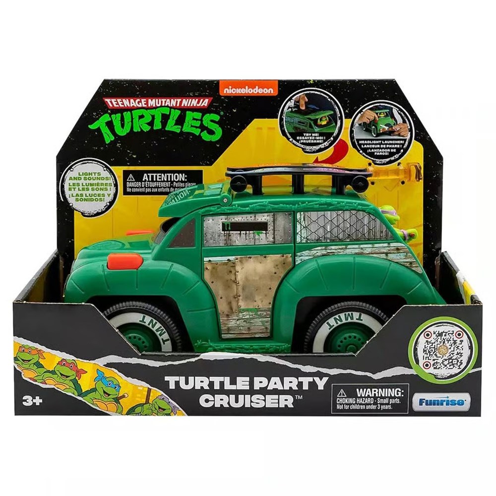 Named one of Toy Insider s 2024 Top Holiday Toy a National Parenting Product Award winner and recognized with Pop Insider s Pop Junior Award the Turtle Party Cruiser delivers turtle-powered fun! This vintage Woodie style vehicle comes equipped with long boards on top featuring the signature colors of your favorite Turtles. To get the Turtle party started press down on each longboard color to activate the Turtles popping out of the car - Leonardo Michelangelo Donatello and Raphael. Each turtle also delivers a unique catchphrase! Plus watch as lights illuminate the action with every push of a button adding to the excitement of the Turtle Party Cruiser experience! Appropriate for ages 3 and up.