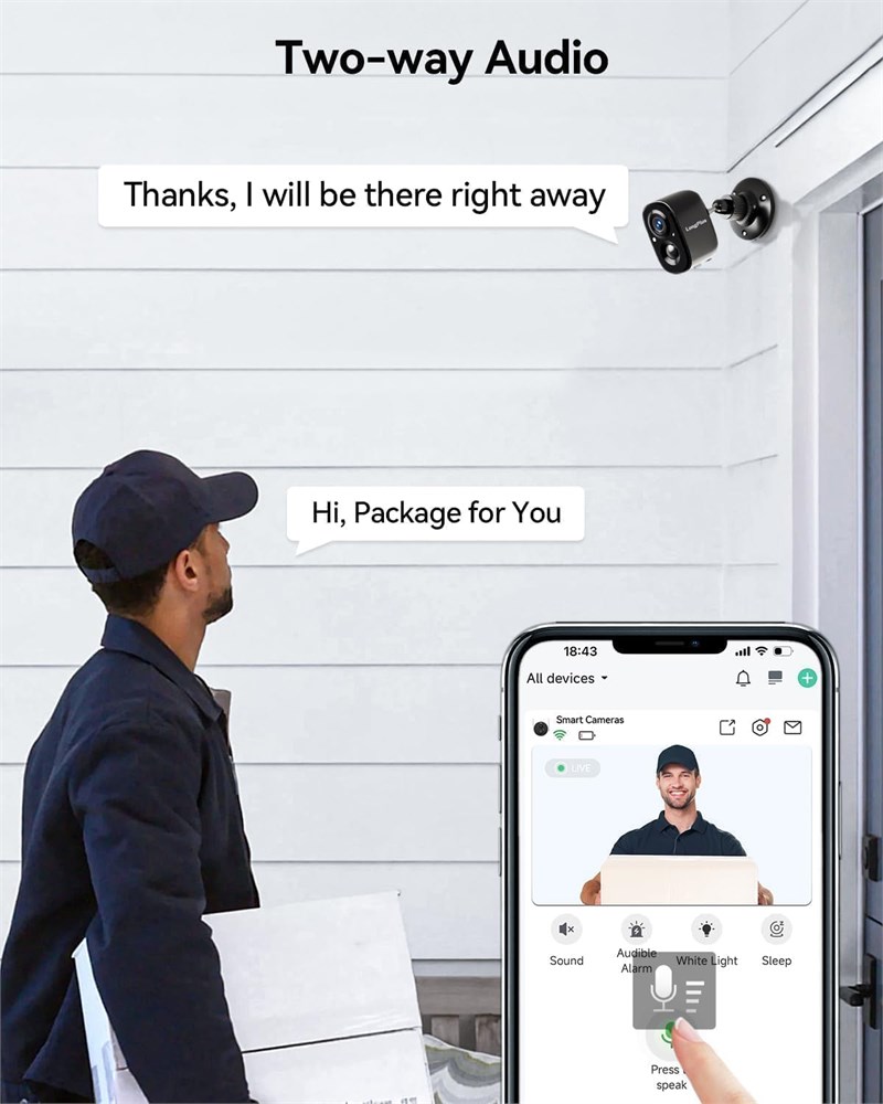 AI Event Analysis - Longplus outdoor security camera adoptes VicoHome latest AI algorithms to identify and differentiate between people, pets, vehicles and packages, effectively reducing false alarms by up to 95%. 3MP Color Night Vision - Equipped with cutting-edge color night vision technology, this 3MP resolution night vision security camera can capture vivid and vibrant clear color images even in low light condition within 33ft. 4 cameras' video can be viewed on one screen, not missing any corner. PIR Motion Detection/ Siren Alarm - When detected a humanoid motion, The home camera outdoor wireless will automatically trigger an audio and strobe light alarm to scare off the intruder immediately. This outdoor wifi camera is the best choice for you to install it outside such as garage, yard, doorway ect. Flexible Storage Solutions - Benefit from cost-effective storage solutions to utilize up to 128GB Micro SD storage(SD Card is not included), eliminating the need for additional subscription fee. Bank-level encrypted cloud storage is for your option(30-day cloud trial, start and cancel anytime.) 2-way Talk & Device Sharing - With the 3D cancellation microphone and speaker, you can listen and talk to anyone through vicohome app anytime anywhere. This indoor outdoor camera wireless can be shared with multiple users in globally at the same time and you can protect your home, take care of your babay and pet with your families together. 100% Wire-free & Easy Installation - With the 100% wire-free design, the battery operated outdoor security camera requires no complicated wiring or power outlets, you can install it in minutes.