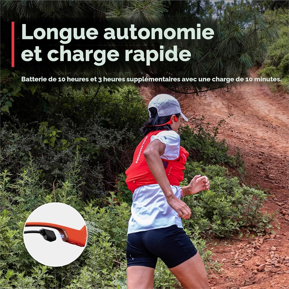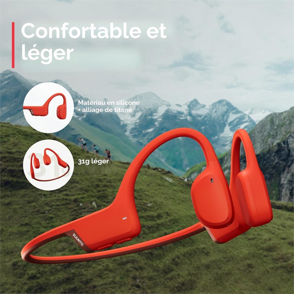 Technologie de conduction osseuse v ritable : SUUNTO Sonic utilise une conduction osseuse avanc e pour transmettre directement les vibrations audio travers vos os, en gardant vos oreilles ouvertes et sans fuite sonore. Parfait pour les bureaux, les courses en plein air ou le v lo, ces couteurs de sport vous permettent de rester conscient de votre environnement sans les enlever. Qualit sonore sup rieure : Profitez d'un son exceptionnel avec la courbe de r ponse en fr quence optimis e du SUUNTO Sonic, offrant des basses puissantes et des aigus clairs. L'unit de pilote audio innovante et la conception unique de la coque garantissent une exp rience d' coute riche tout en minimisant les fuites sonores. L gers et id aux pour le sport : Fabriqu s en silicone de premi re qualit et en alliage de titane, ces couteurs de course ne p sent que 30,6 g. Leur design ergonomique assure le confort pendant les longs entra nements, tandis que l'indice IP55 prot ge contre la transpiration et la pluie l g re, id al pour les modes de vie actifs. Appels d'une clart cristalline : quip de microphones HD doubles et de la technologie d'annulation de bruit cVc, le SUUNTO Sonic assure des appels vocaux clairs et de haute qualit , que vous soyez en plein air ou en milieu urbain. Restez connect sans compromettre le son. Longue autonomie de batterie et charge rapide : profitez de jusqu' 10 heures de temps de lecture sur une seule charge. Avec une capacit de charge rapide, seulement 5 minutes de charge offrent 90 minutes d utilisation, et une charge compl te ne prend qu une heure, parfait pour les modes de vie en d placement.